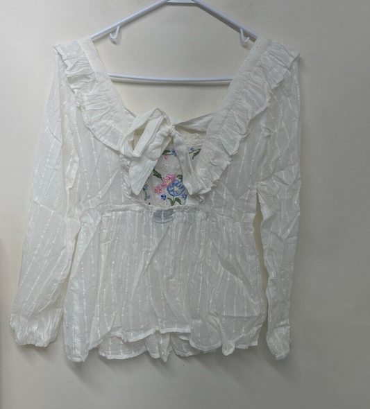 ASOS Women's 2 Square Neck Top with Tie Back Embroidered Bodice White Floral NWT