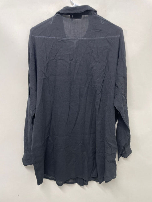 ASOS Design Womens 10 Crinkle Beach Shirt Black Button Down Sheer Cover Up