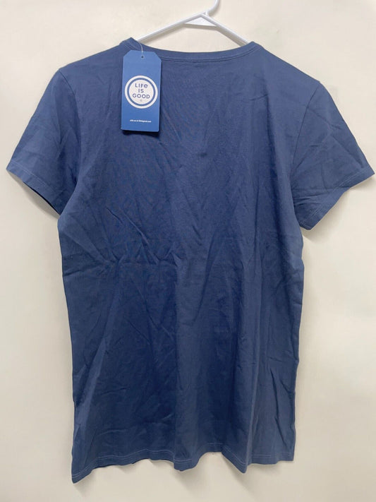 Life is Good Women's M Three Daisies Crusher Vee Tee Blue T Shirt V-Neck NWT