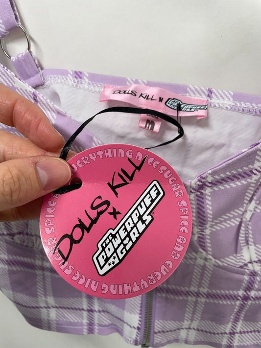 Dolls Kill x The Powerpuff Girls Women's M Fierce & Fab Plaid Corset Top Purple