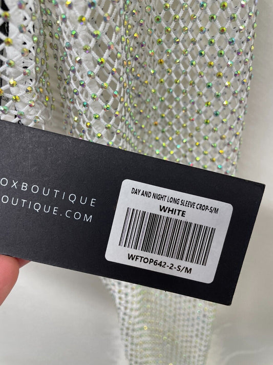 White Fox Women S/M Day And Night Long Sleeve Crop Top White Sheer Diamante Rave