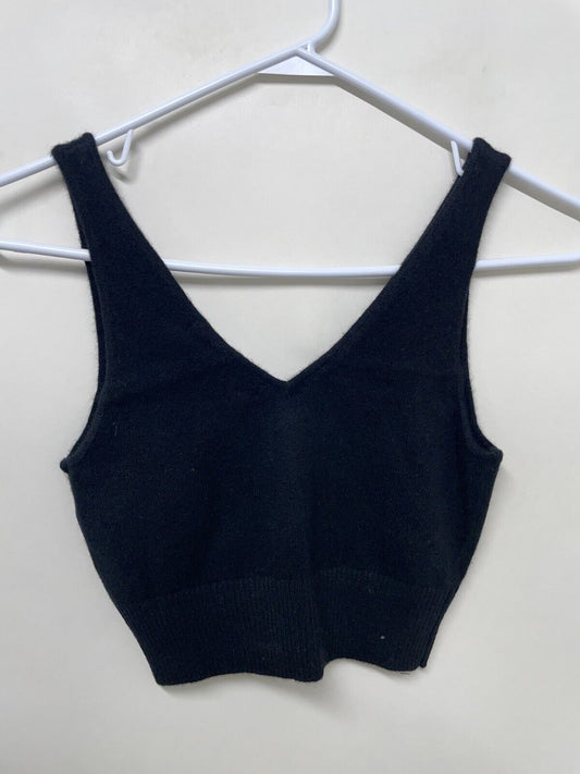 Quince Womens XS Mongolian Cashmere Cropped Tank Black Ribbed Hem V-Neck Stretch