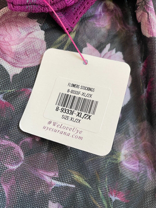 Uye Surana Women's XL/2X Floral Fantasy Printed Stay Up Stockings 8-9333F