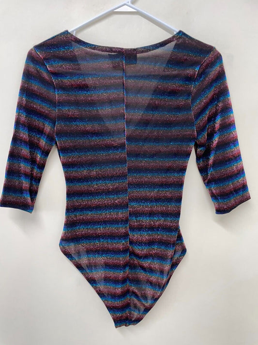 Boodwah Womens Shimmer Rainbow Striped Bodysuit Festival RaveV-Neck Eras Swiftie