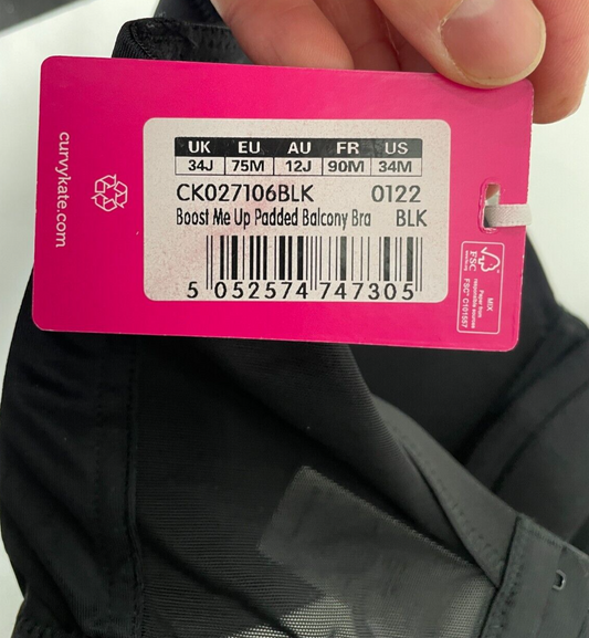Curvy Kate Women's 34M Boost Me Up Padded Balcony Bra Black CK027106BLK NWT