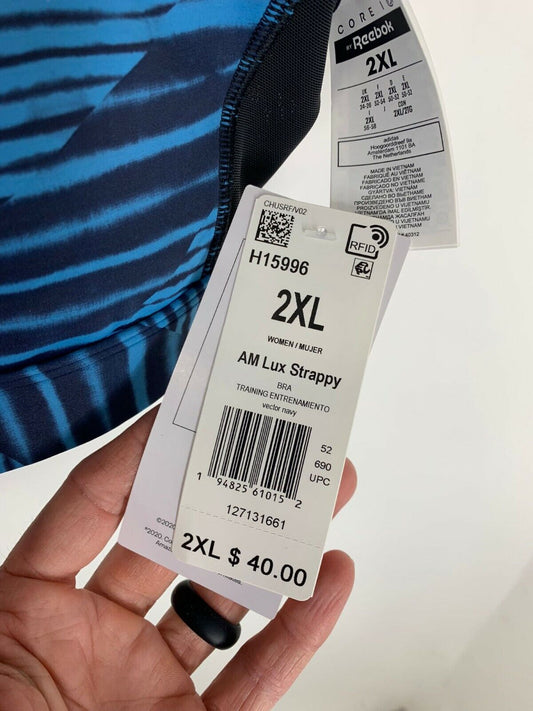Core 10 Reebok Womens 2XL Lux Strappy Sports Bra Navy Medium Support