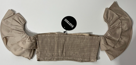 Babyboo Women's M Joy Ruffle Off Shoulder Crop Top & Maxi Skirt Set Beige