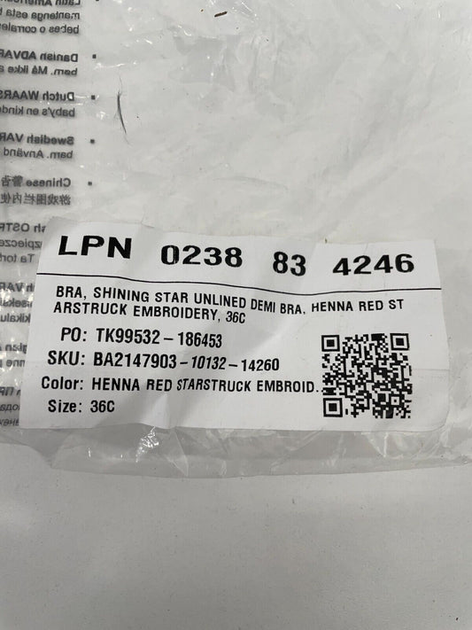 Savage Fenty Women's 36C Shining Star Embroidered Unlined Demi Bra Henna Red NWT