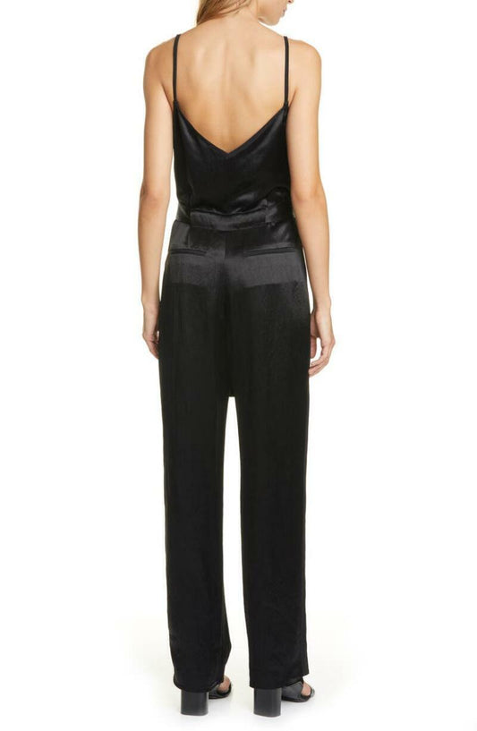 rag & bone Womens 8 Black Rochelle Satin Jumpsuit Sleeveless Belted
