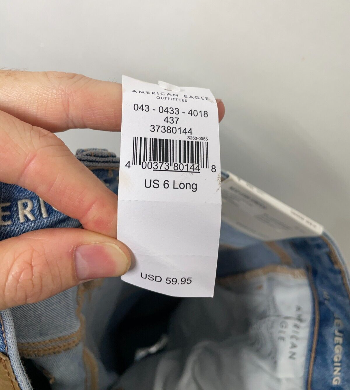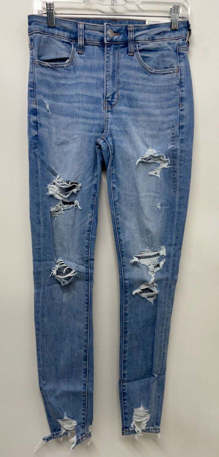AE American Eagle Women 6 Long Ripped High Waisted Jegging Fresh Bright Blue