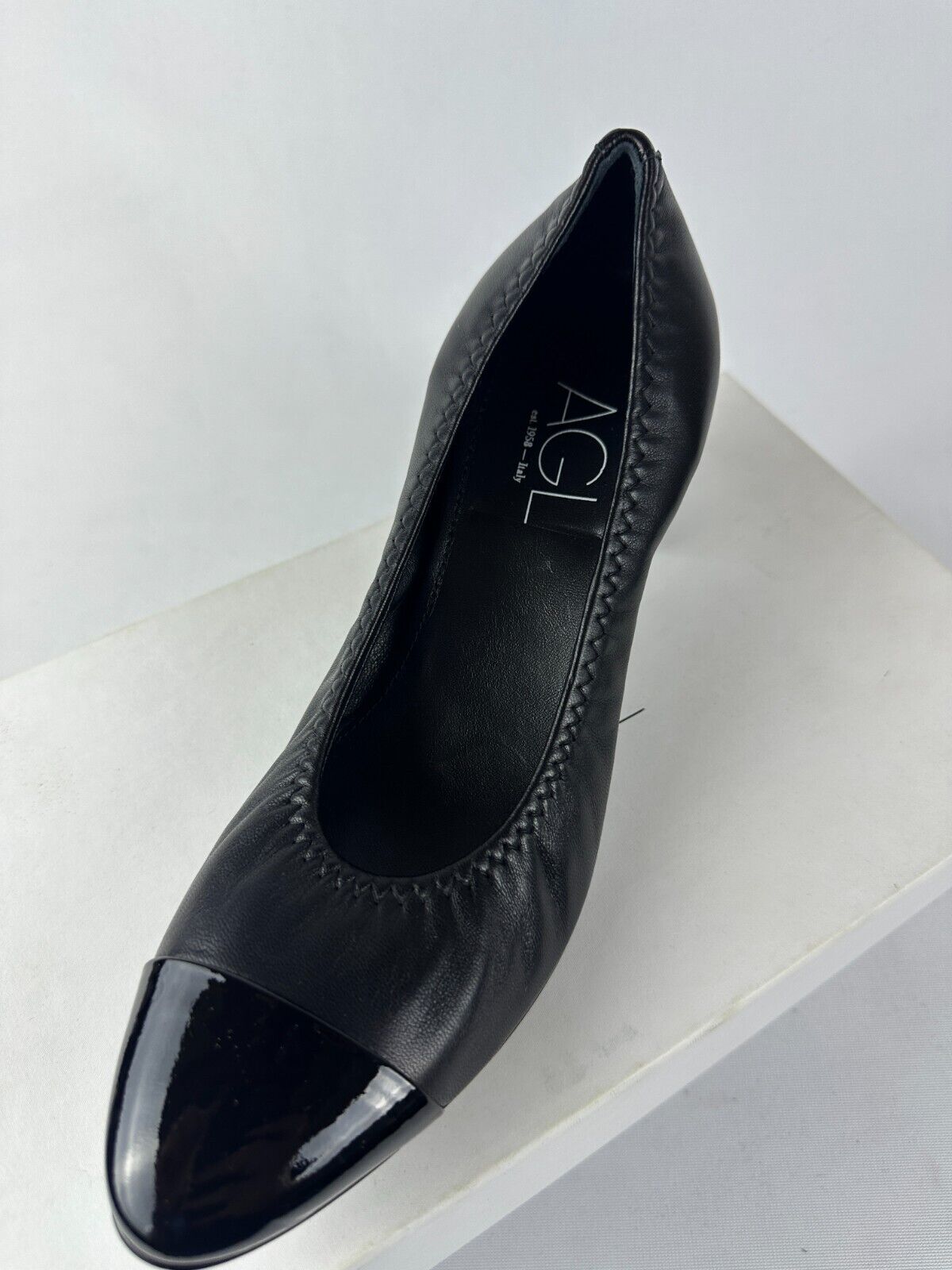 AGL Attilio Giusti Leombruni Womens 39.5 Black Leather Pump Shoe Cap Toe N152015