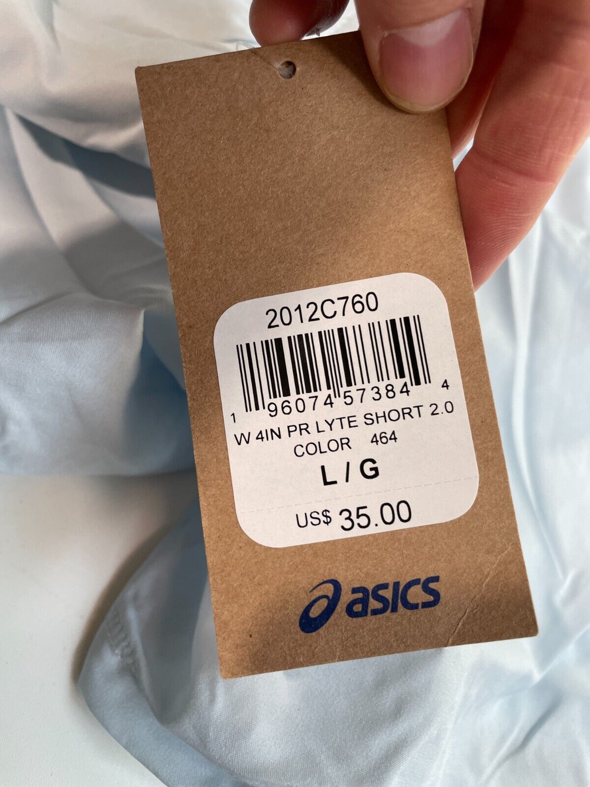 ASICS Womens L PR Lyte 4in Running Short 2.0 W/ Liner Light Blue 2012C760