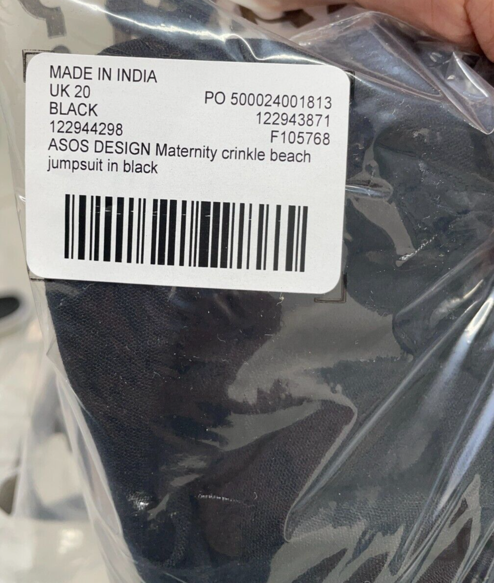 ASOS Design Womens 16 Maternity Crinkle Beach Jumpsuit Black 122943871 Wide Leg