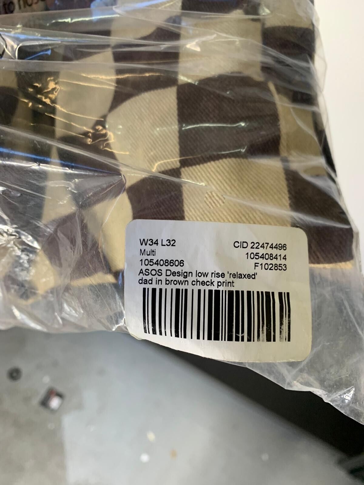 ASOS Design Womens 34x32 Low Rise Relaxed Dad Jeans Brown Checkered Print Denim