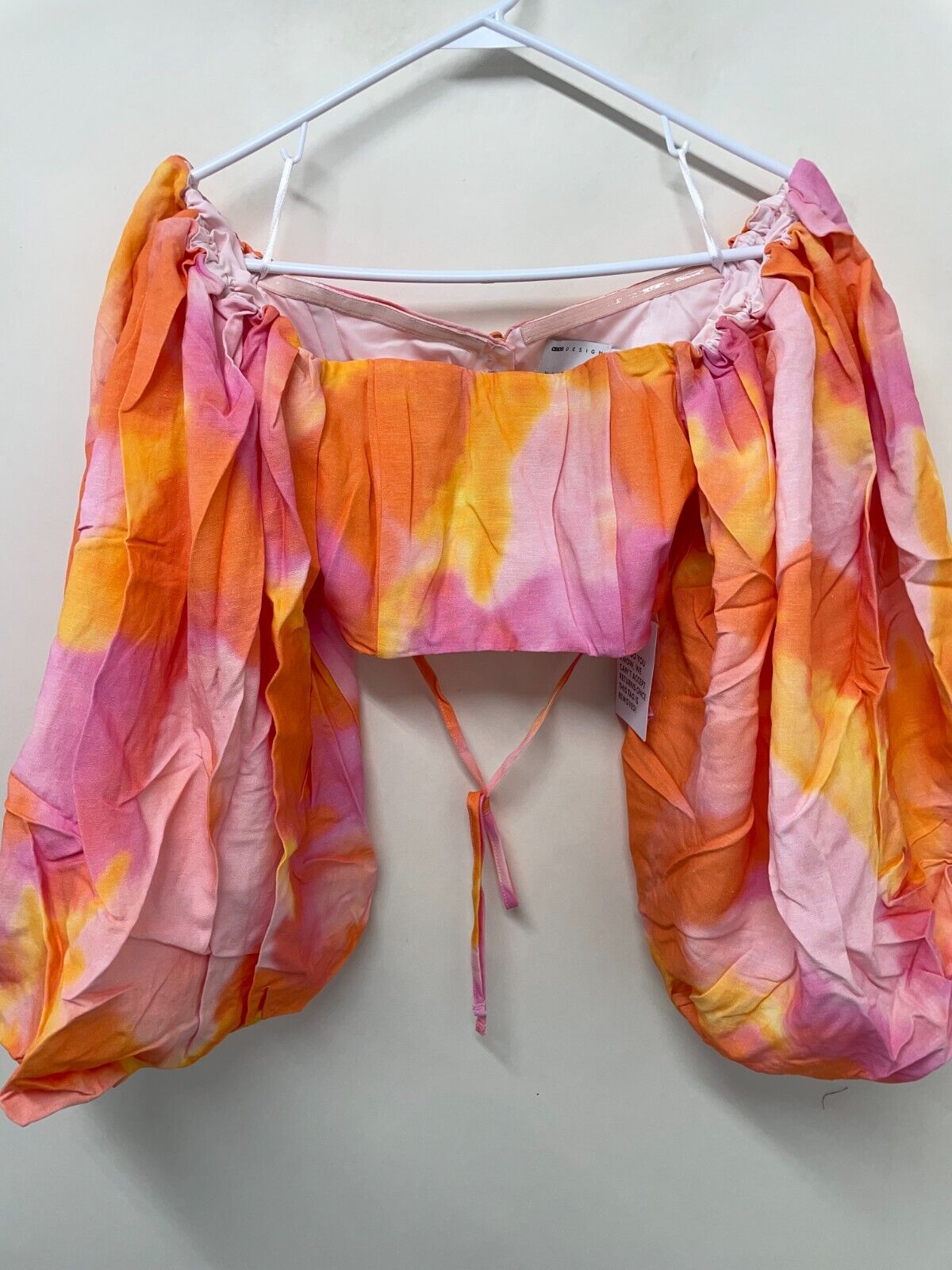 Asos Design Womens 4 Millie Coord Puff Sleeve Tie Dye Print Crop TopWomens Size 4