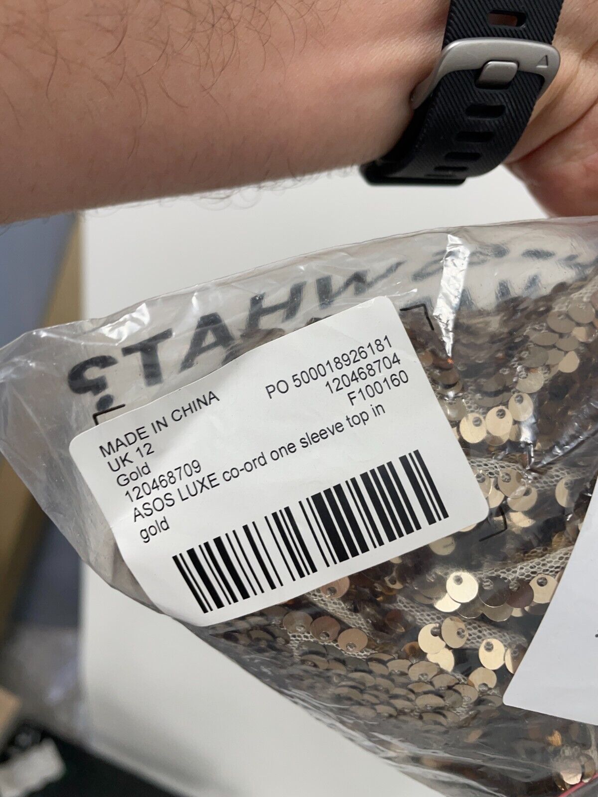 ASOS LUXE Womens 8 Co-ord One Sleeve Sequin Crop Top Gold Regular Fit 120468704