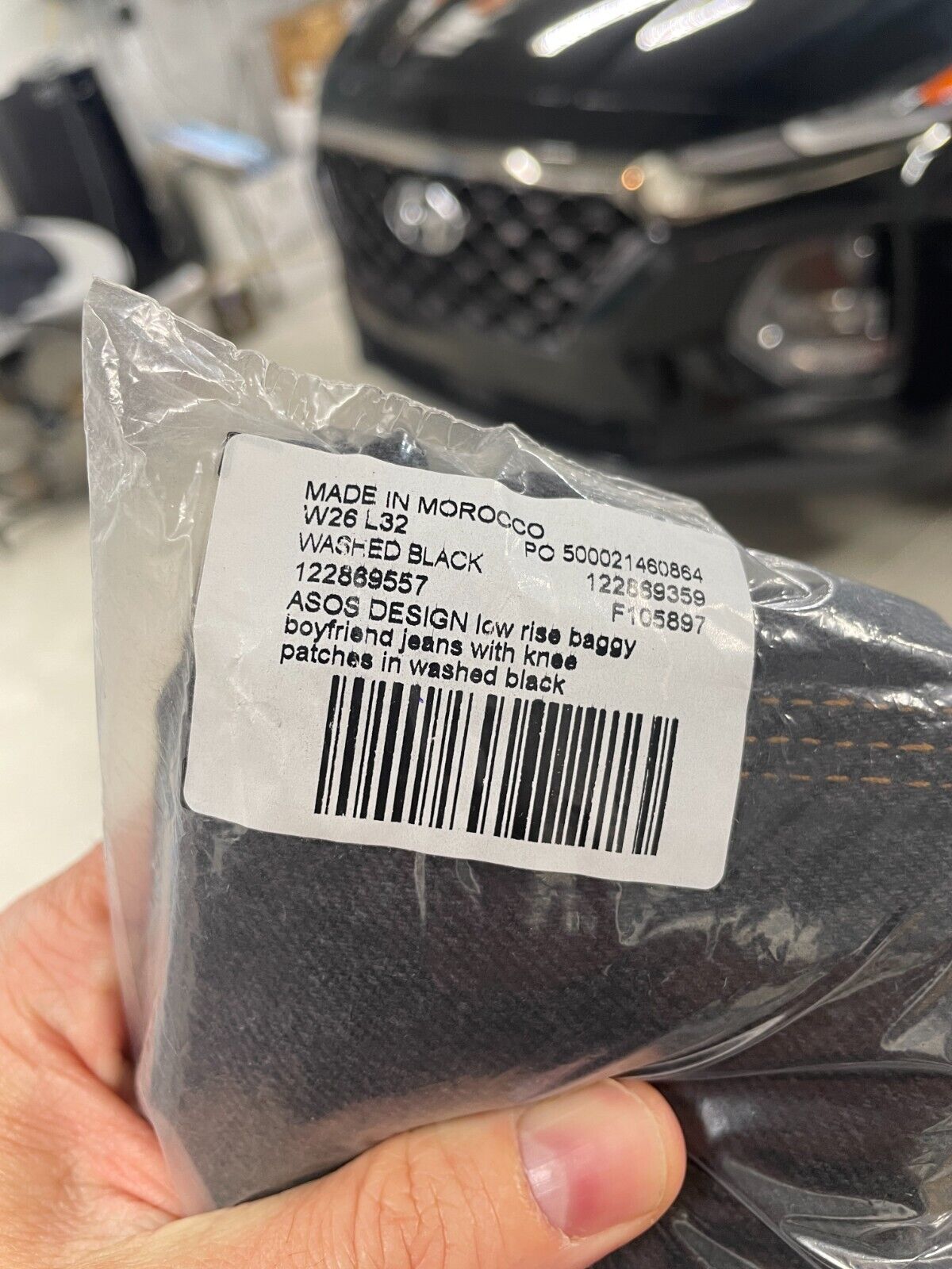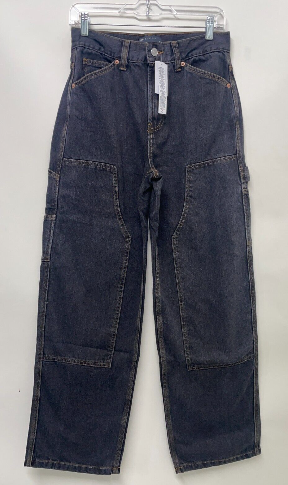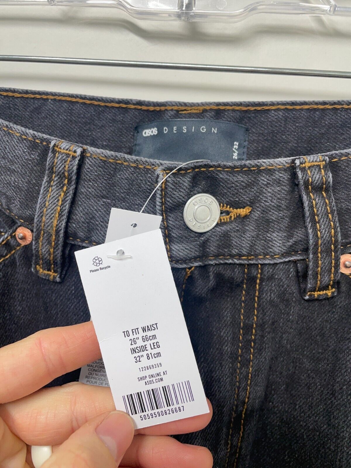 ASOS Womens 26/32 Low Rise Baggy Boyfriend Jeans With Knee Patches Washed Black
