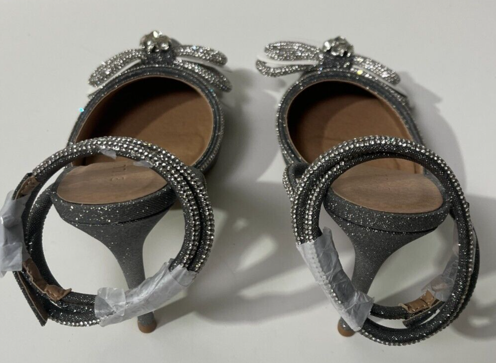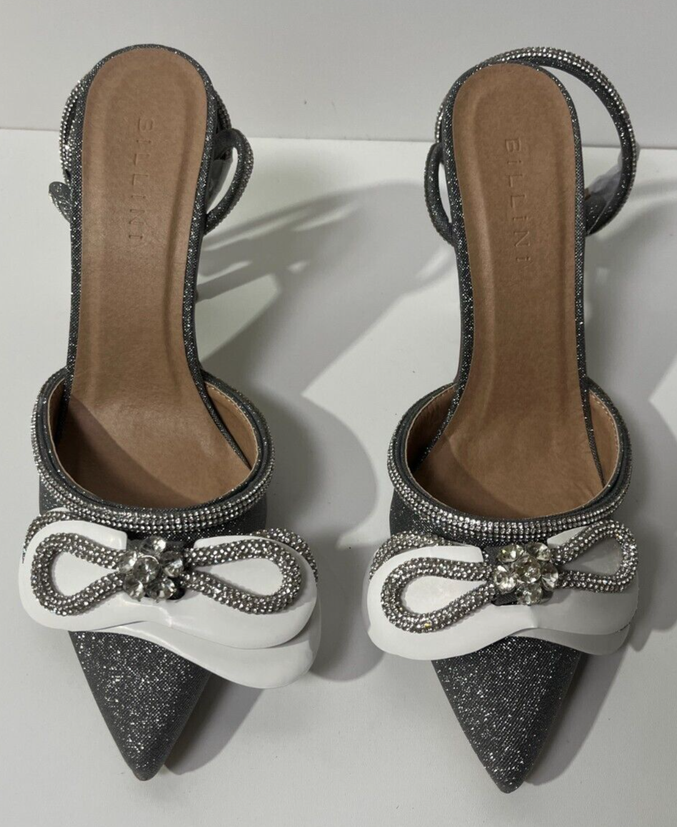Billini Women's 9 Elope Crystal Bow Pointed-Toe Stiletto Heel Silver Glitter