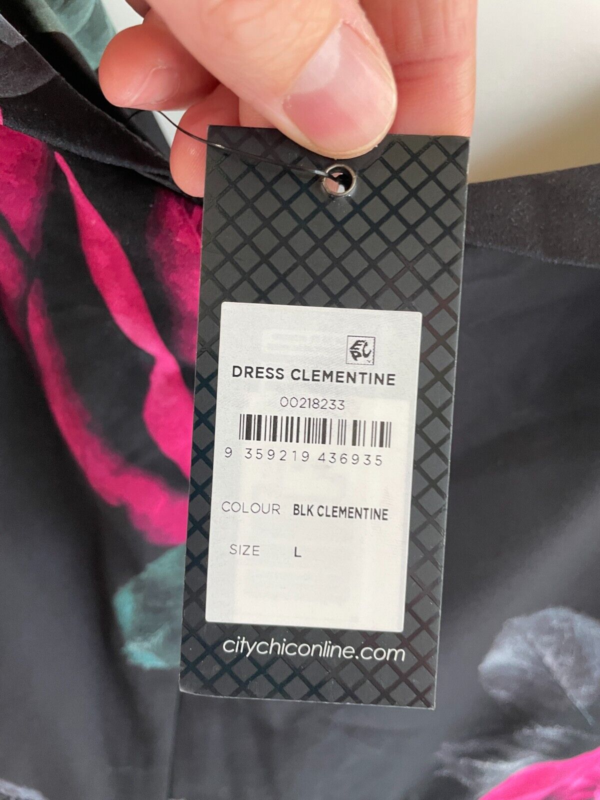 City Chic Women's L Clementine Floral Faux Wrap Off Shoulder Dress Black 218233