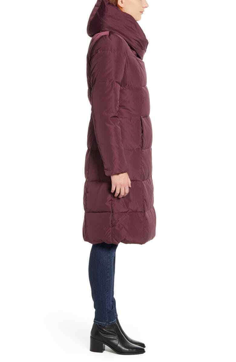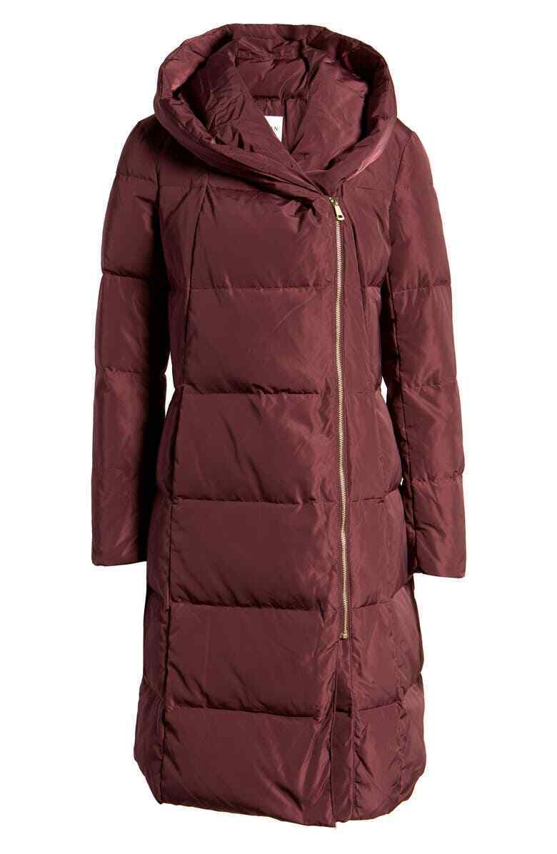 Cole Haan Womens XS Merlot Purple Asymmetrical Zip Down & Feather Coat Parka
