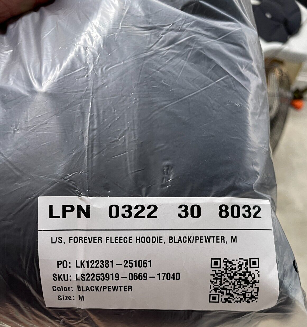 Fabletics Women's M Forever Fleece Hoodie Black/Pewter Pullover Pockets NWT