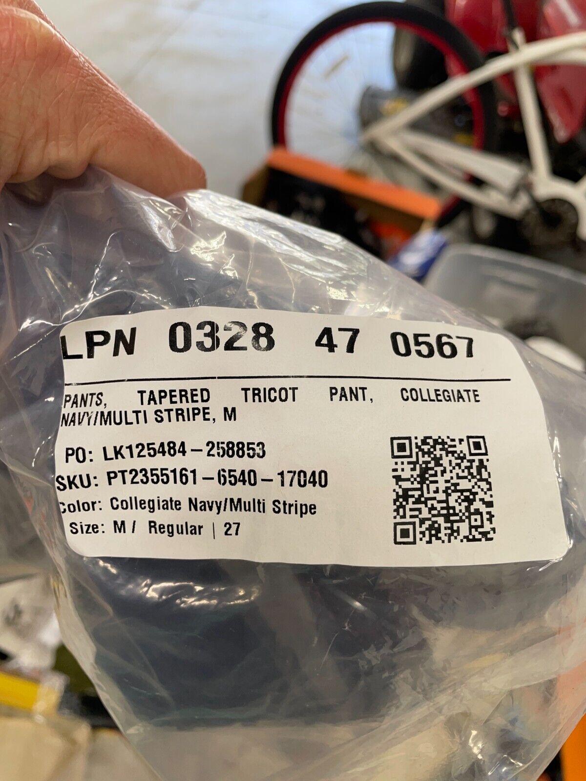 Fabletics Womens M Tapered Tricot Pants Collegiate Navy Multi Stripe PT2355161