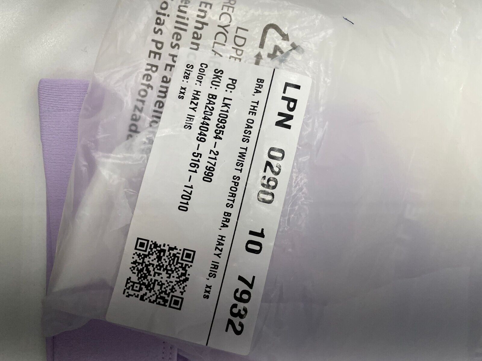 Fabletics Womens XXS Oasis Twist Sports Bra Hazy Iris Purple Crisscross Strap