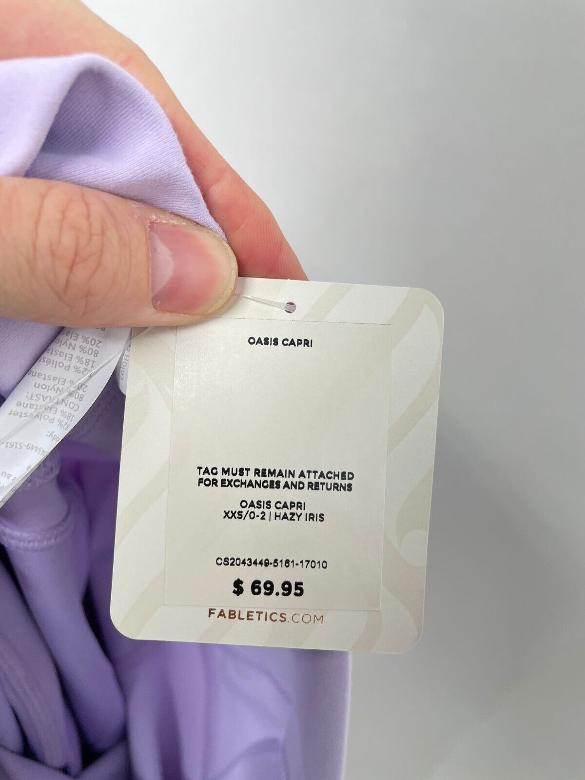 Fabletics Womens XXS The Oasis Capri Legging Yoga Pant Hazy Iris Purple PureLuxe