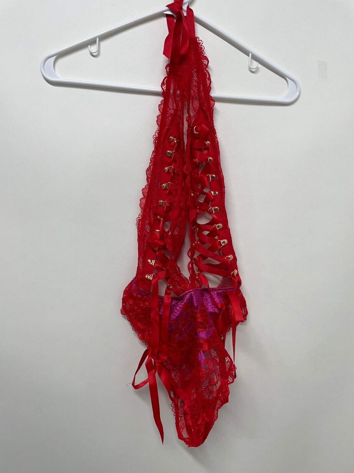 Fenty Savage Womens XS Lace d Up Teddy Lingerie Goji Berry Red Thong