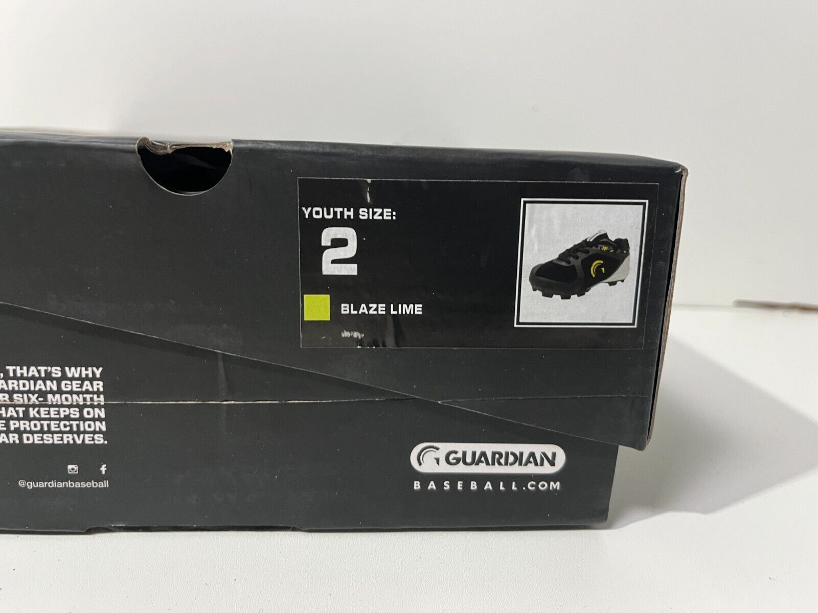 Guardian Youth Size 2 Blaze Lime Lace Up Low Top Baseball & Softball Cleat Black