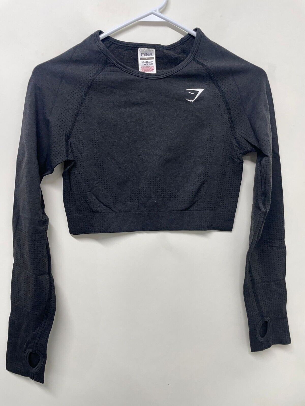 Gymshark Womens L Vital Seamless 2.0 Crop Top Black Marl Mesh B1A3D-BBF3 Gym