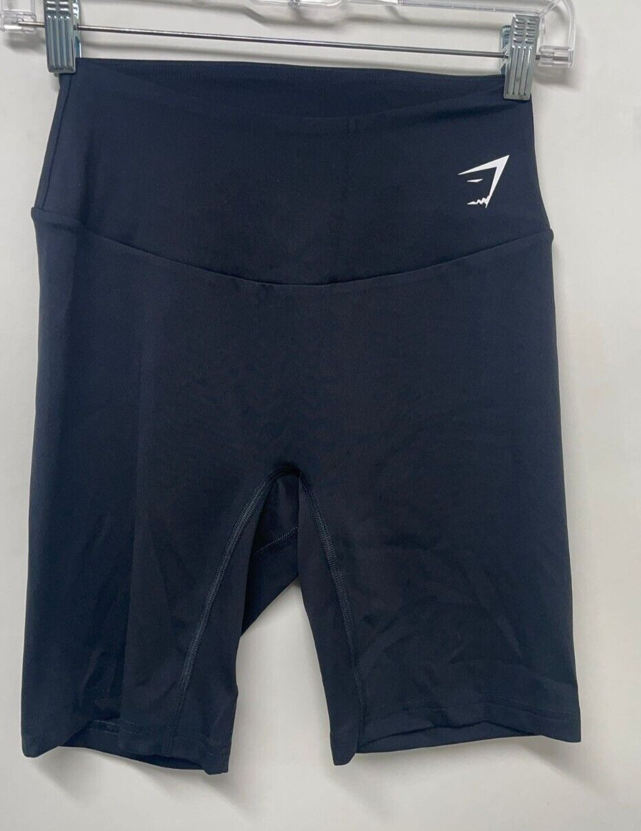 Gymshark Womens M Training Brandmark Cycling Shorts Black High Rise B3A7K Gym