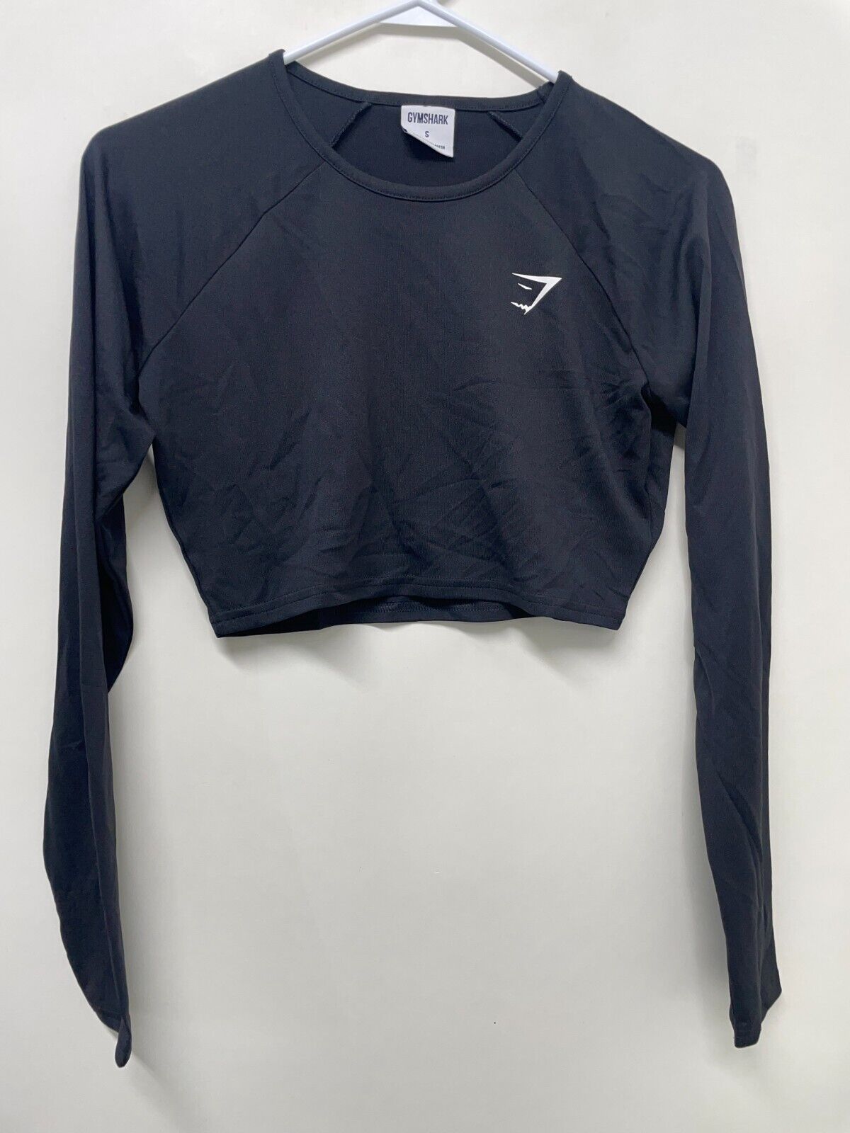 Gymshark Womens S Training Long Sleeve Crop Top Black Fitted Crewneck B2A4F-BBBB