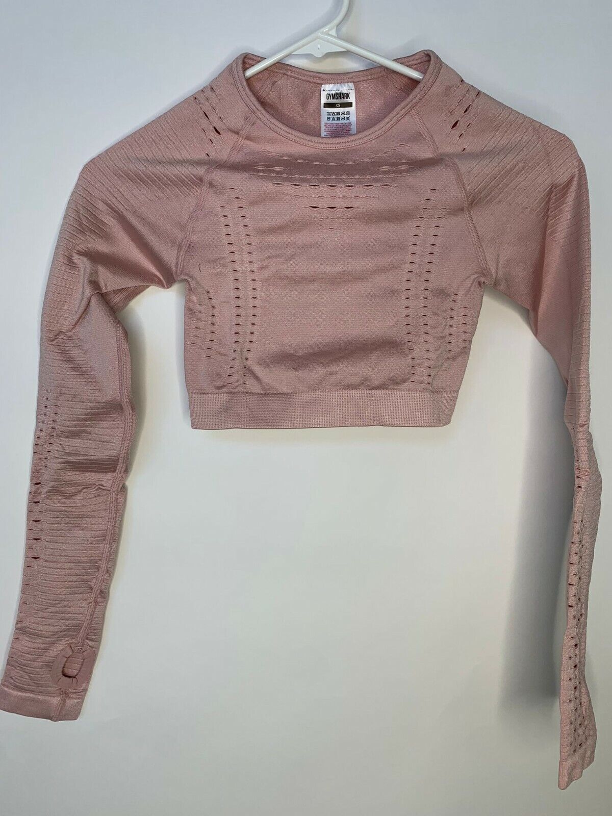 Gymshark Womens XS Glow Long Sleeve Seamless Crop Top Light Pink Perforated