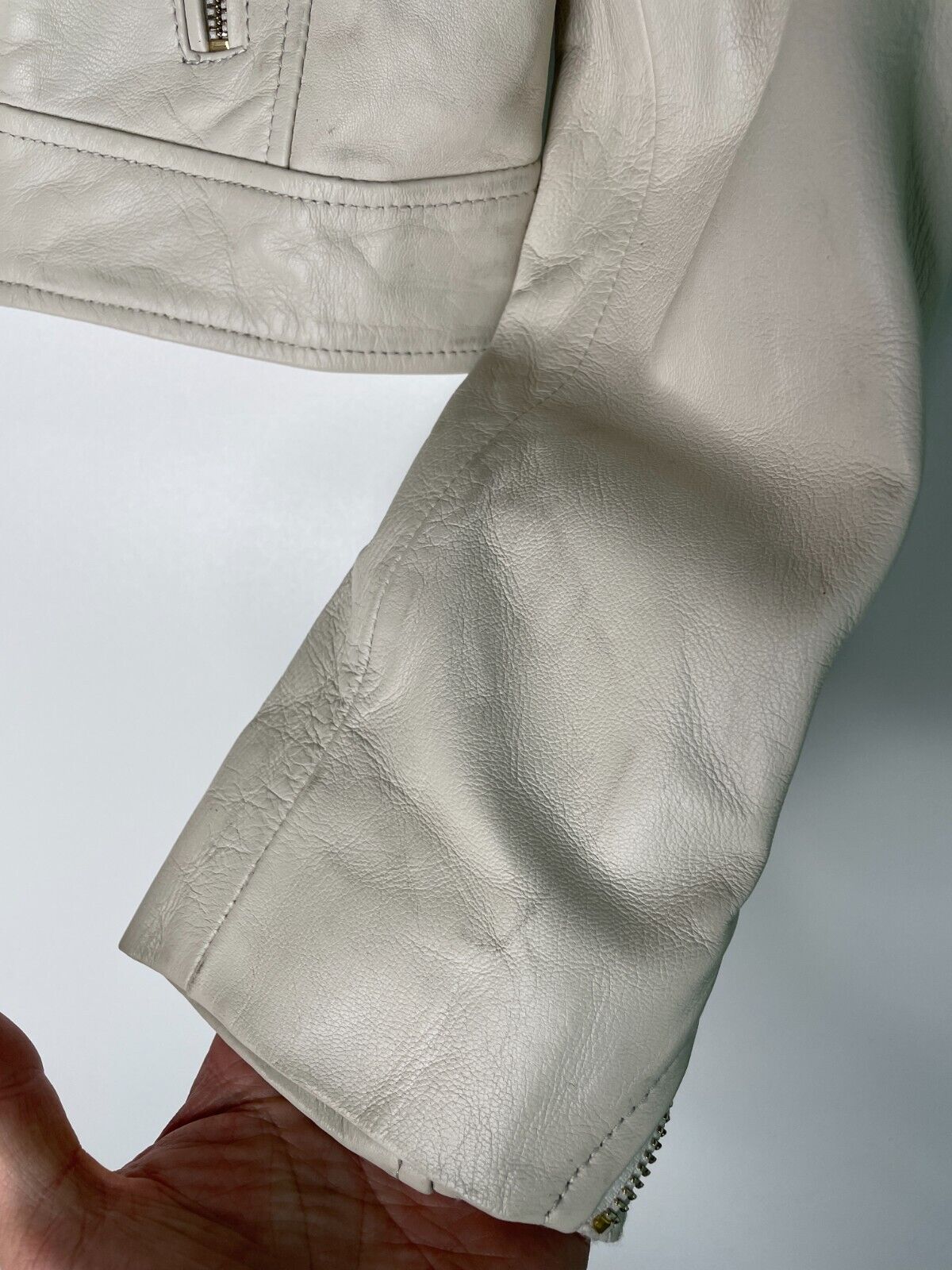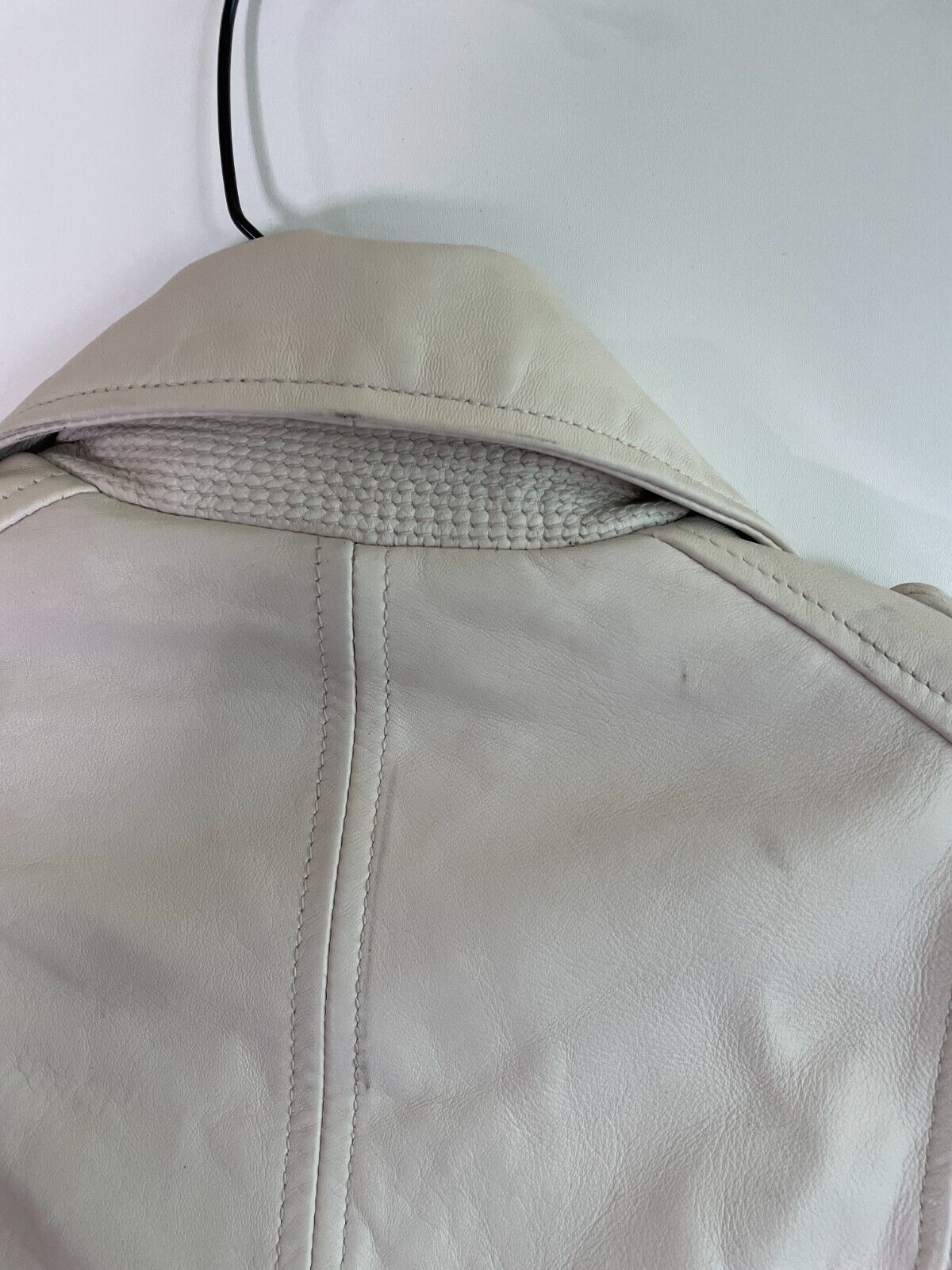 Lamarque Womens S Donna Iconic Leather Biker Jacket Ivory Zippered Sleeves