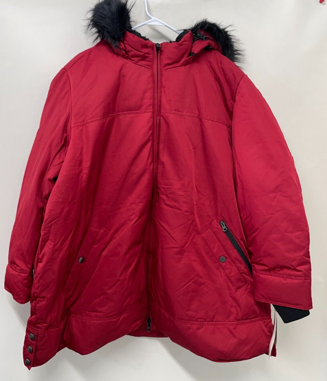 Laurier & Co. Women's Plus 3X Padded Winter Jacket Removable Hood Red Faux Fur