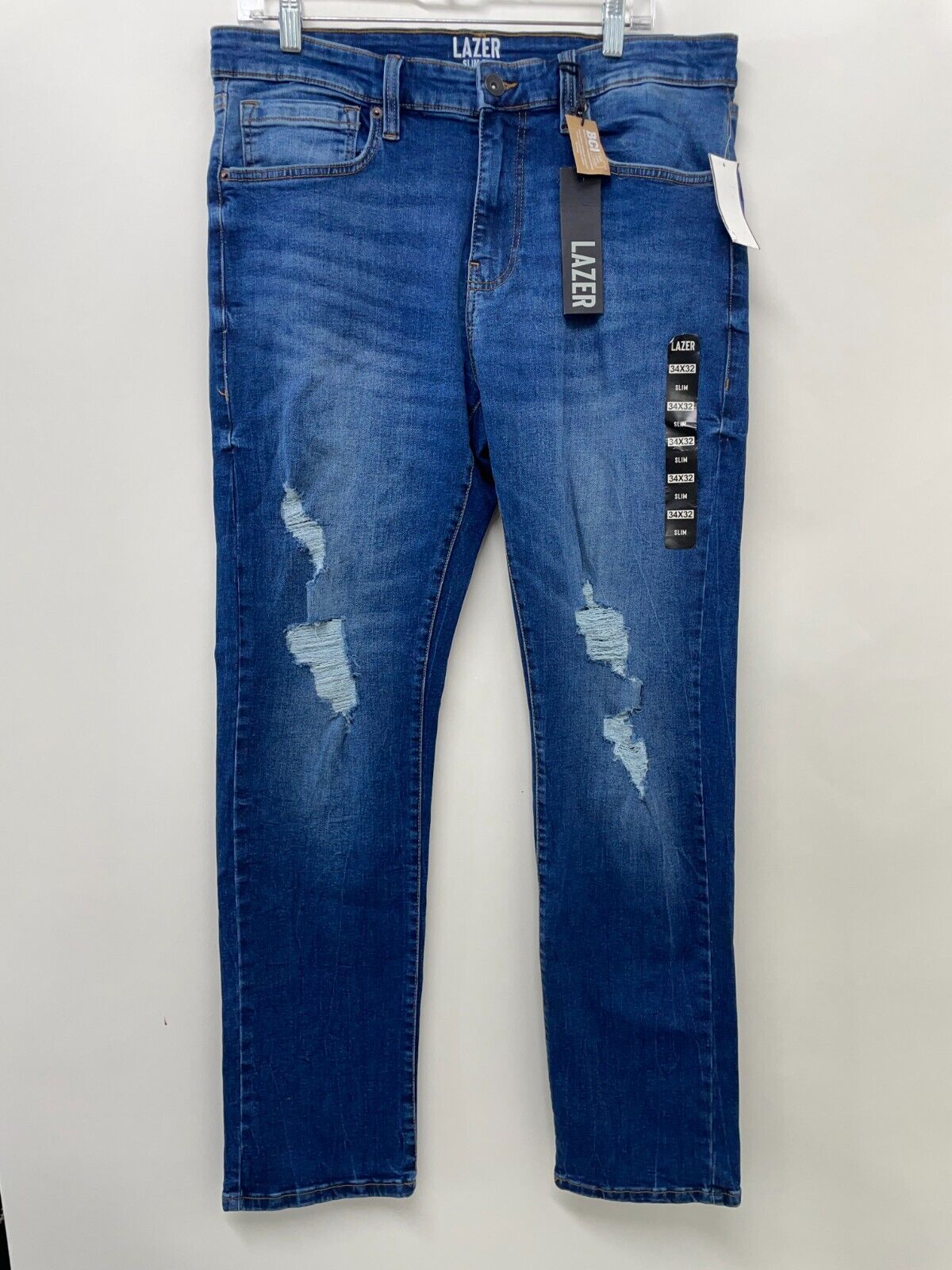 Lazer Mens 34x32 Issac Jeans Tapered Leg Slim-Fit Stretch Distressed ML83592Mens Size 34x32