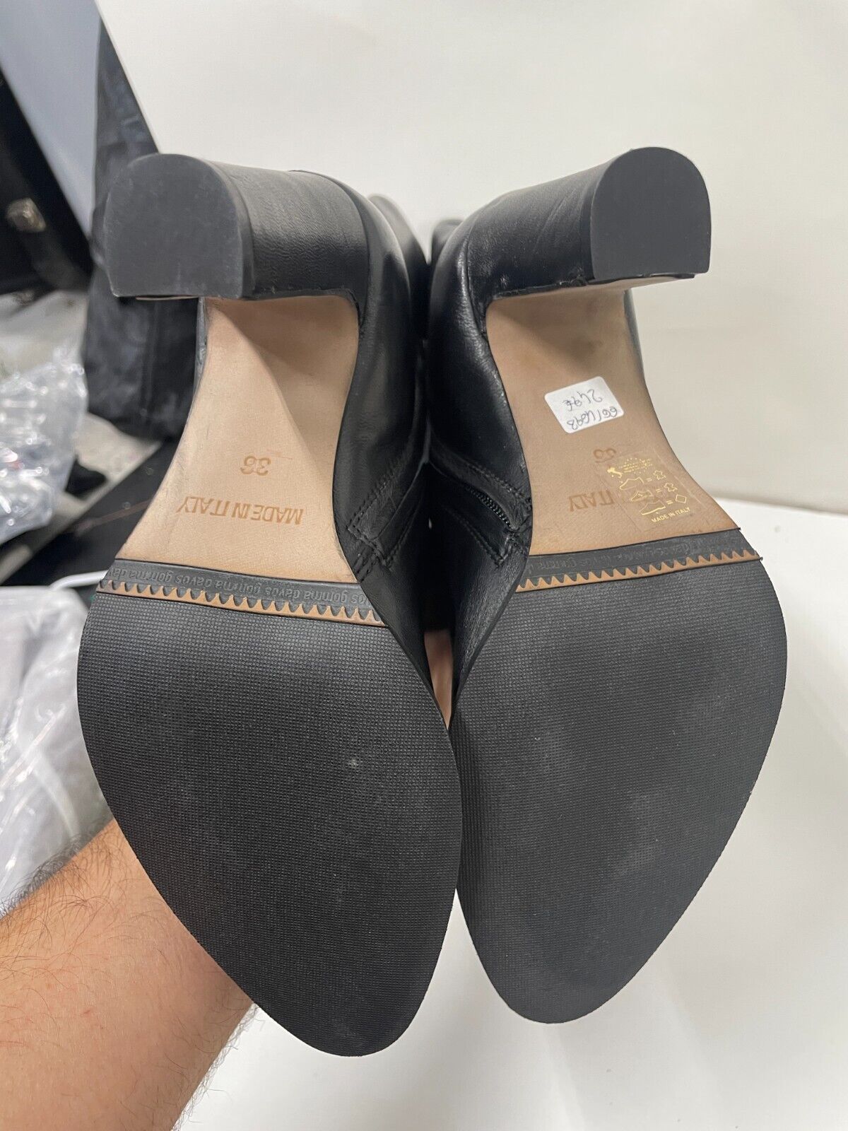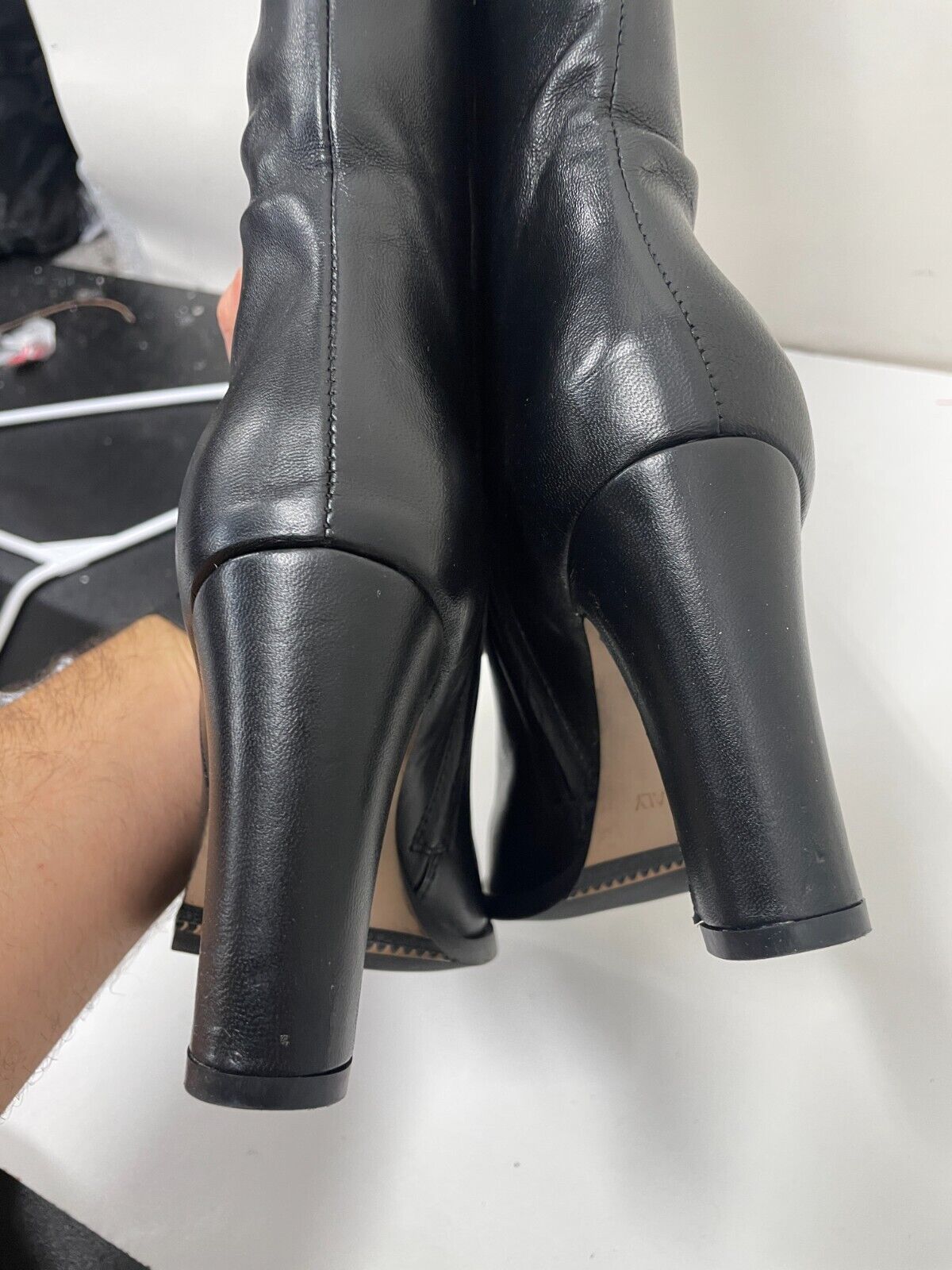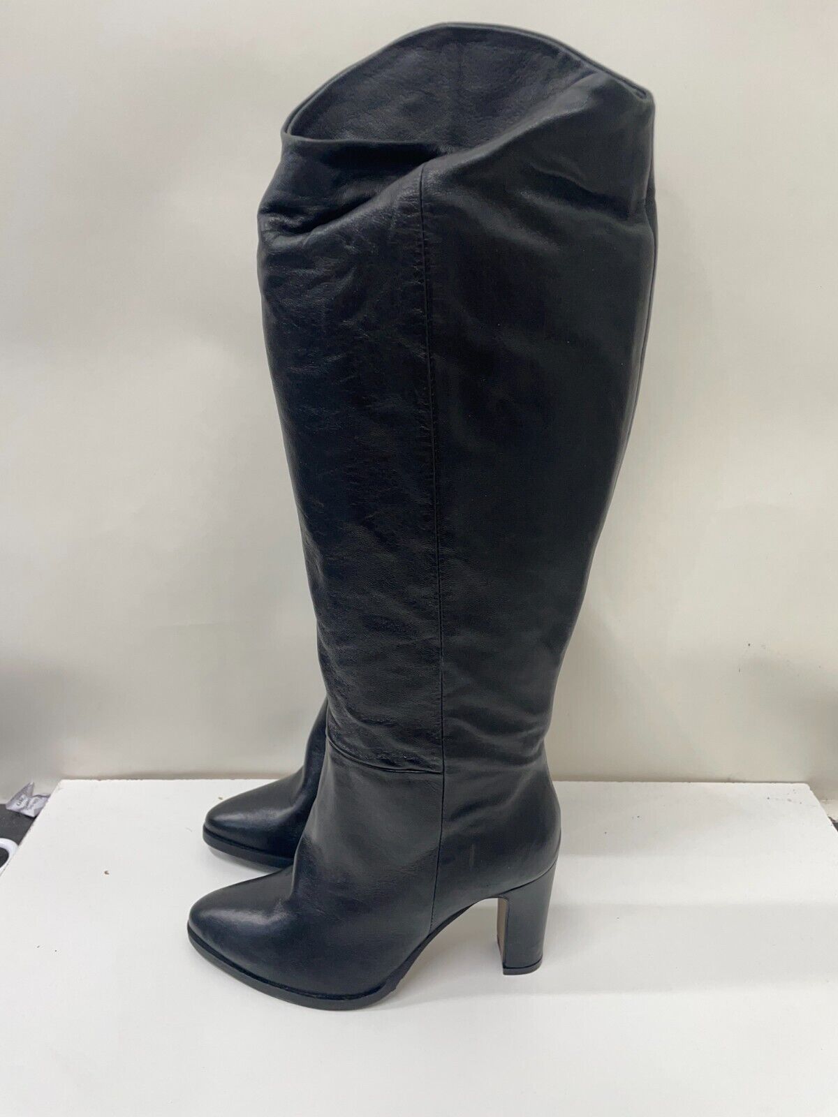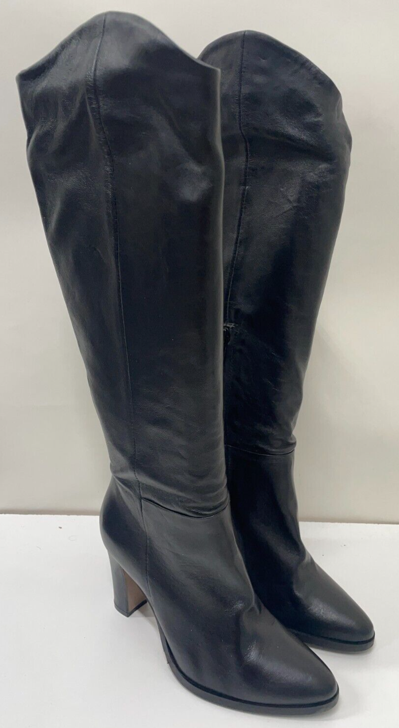 Lea Gu Womens 36 Knee-Length High Boots Black Leather Block Heel Almond Toe