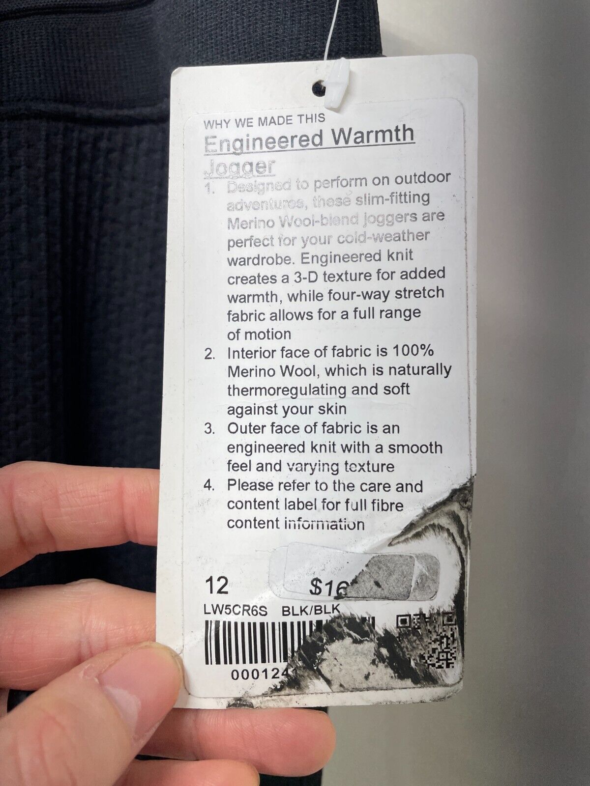 Lululemon Womens 12 Engineered Warmth JoggerWomens Size 12