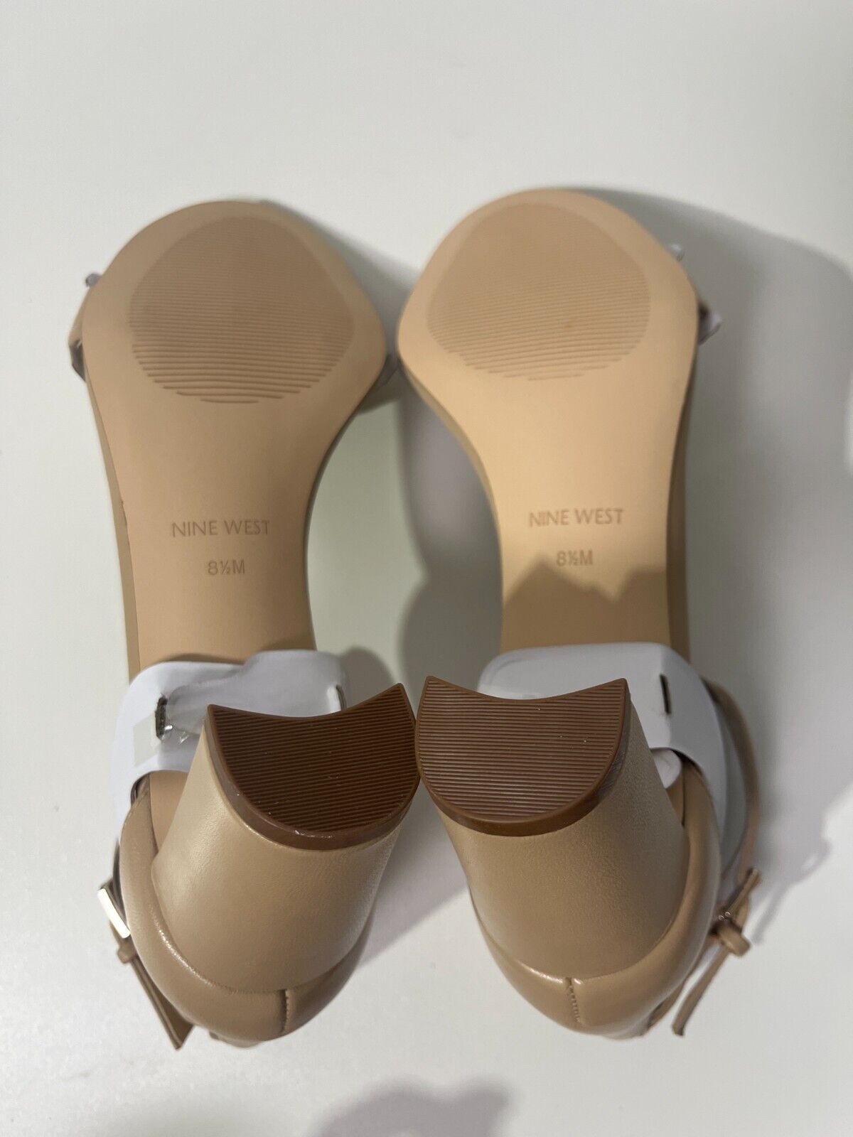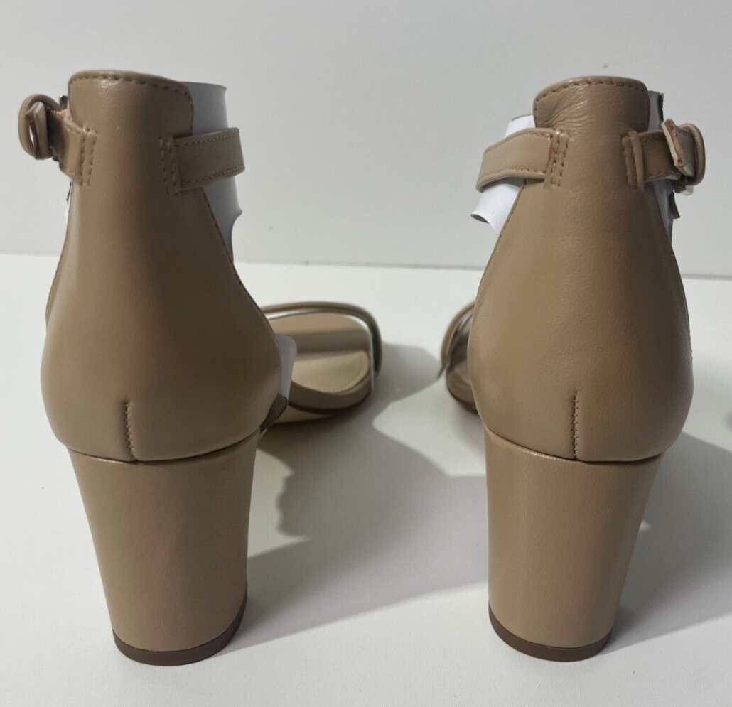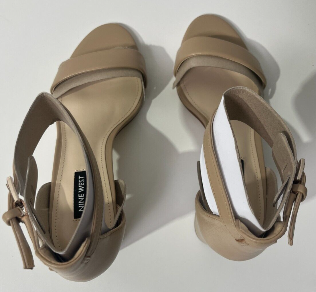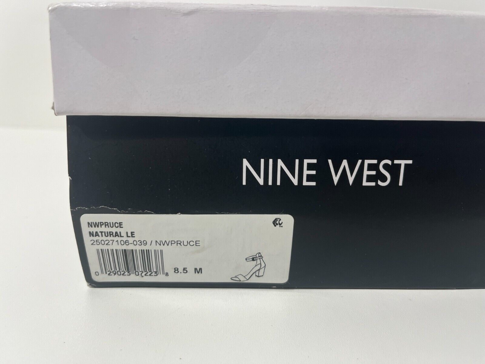 Nine West Women's 8.5M Pruce Ankle Strap Block Heel Leather Sandals Natural