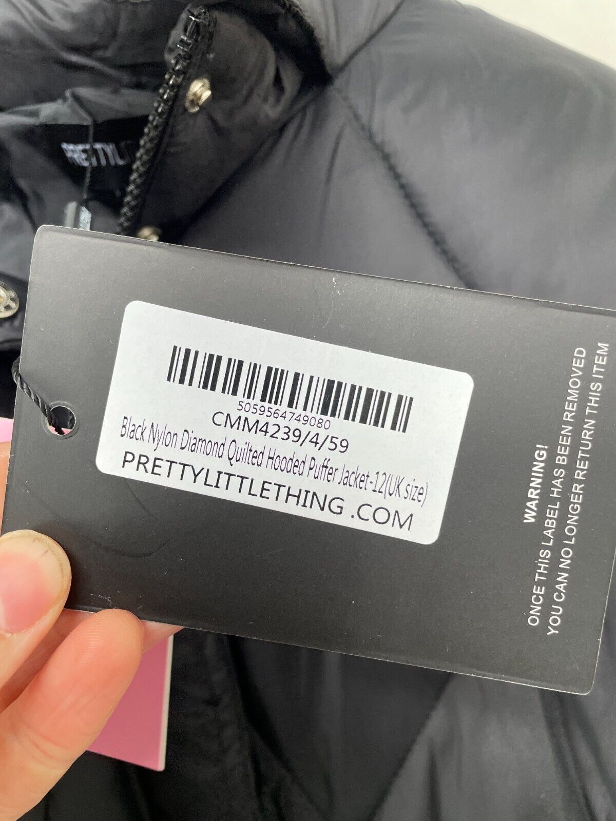 Pretty Little Thing Womens Diamond Quilted Hooded Puffer JacketWomens Size 12UK (US 8)