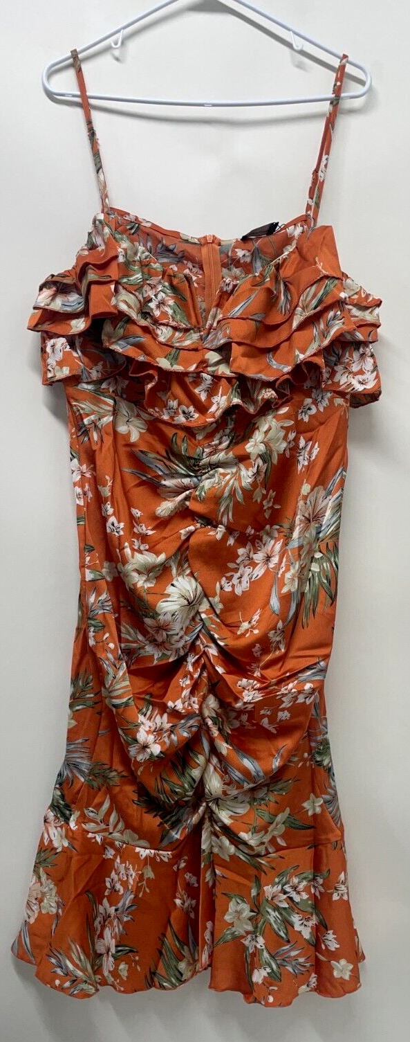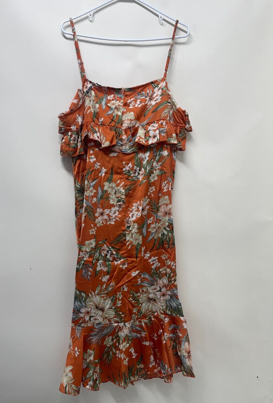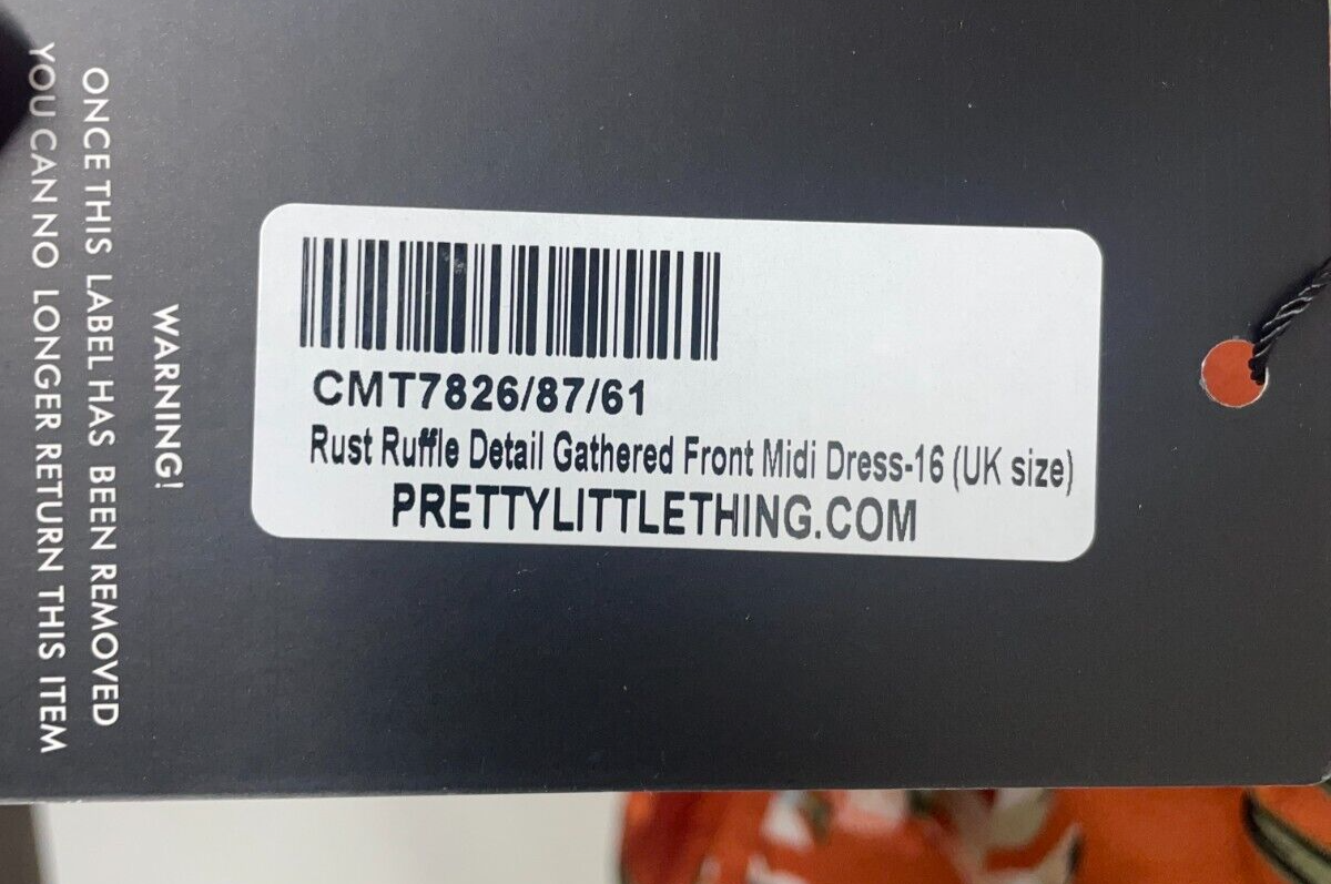 PrettyLittleThing Womens 12 Ruffle Floral Gathered Front Midi Dress Rust CMT7826