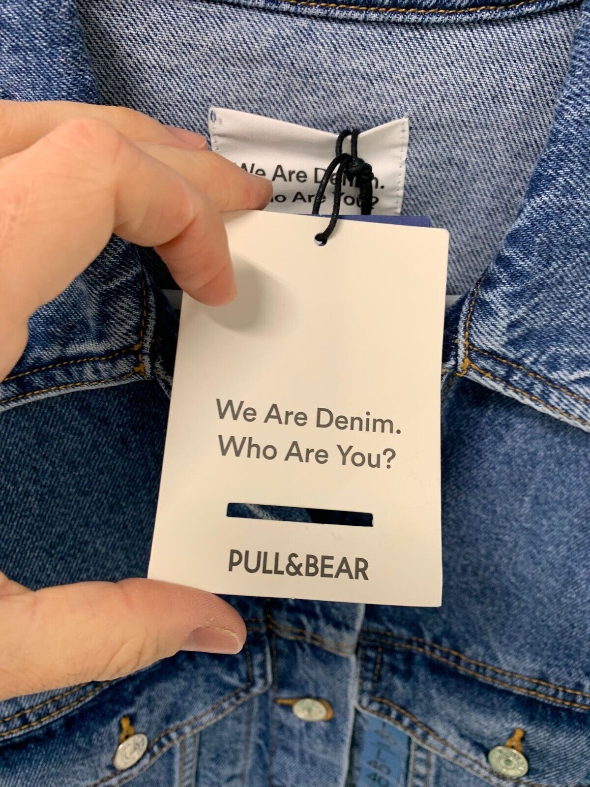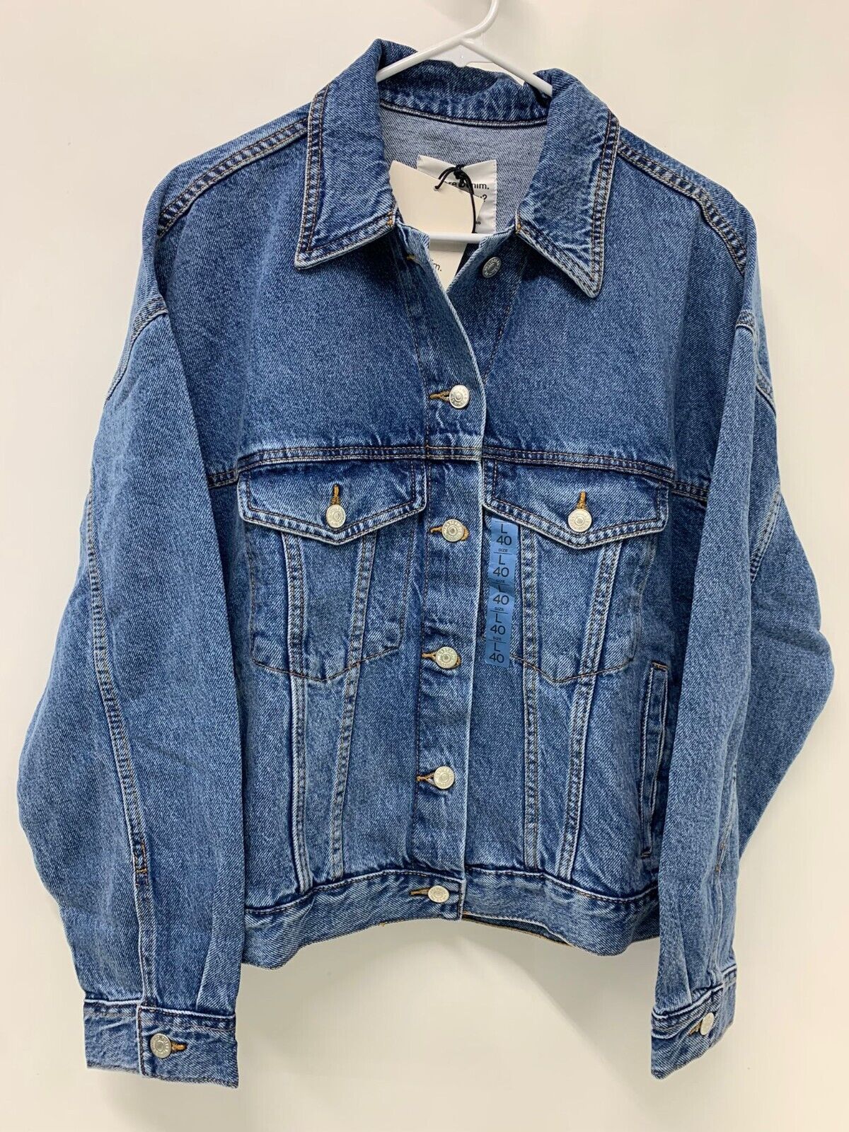 Pull & Bear Womens L Denim Trucker Jacket Button Down Jean Medium Wash