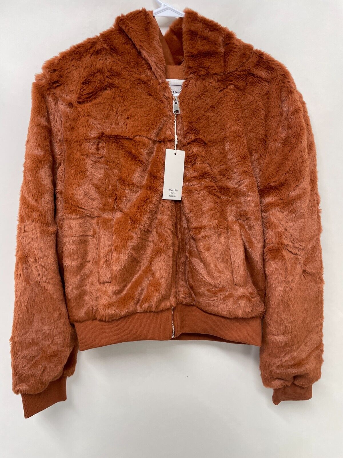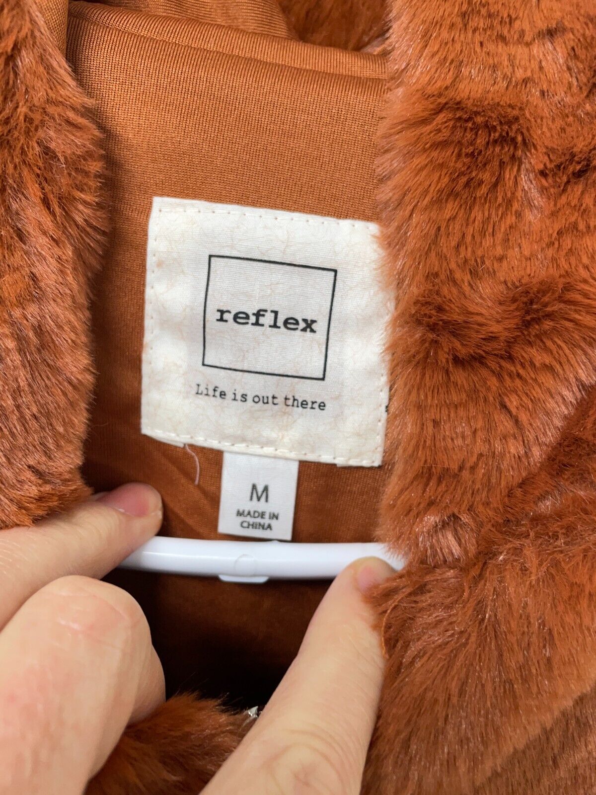 Reflex Womens M Faux Fur Hood Zip Up Jacket Burnout Orange Banded Bomber JK945