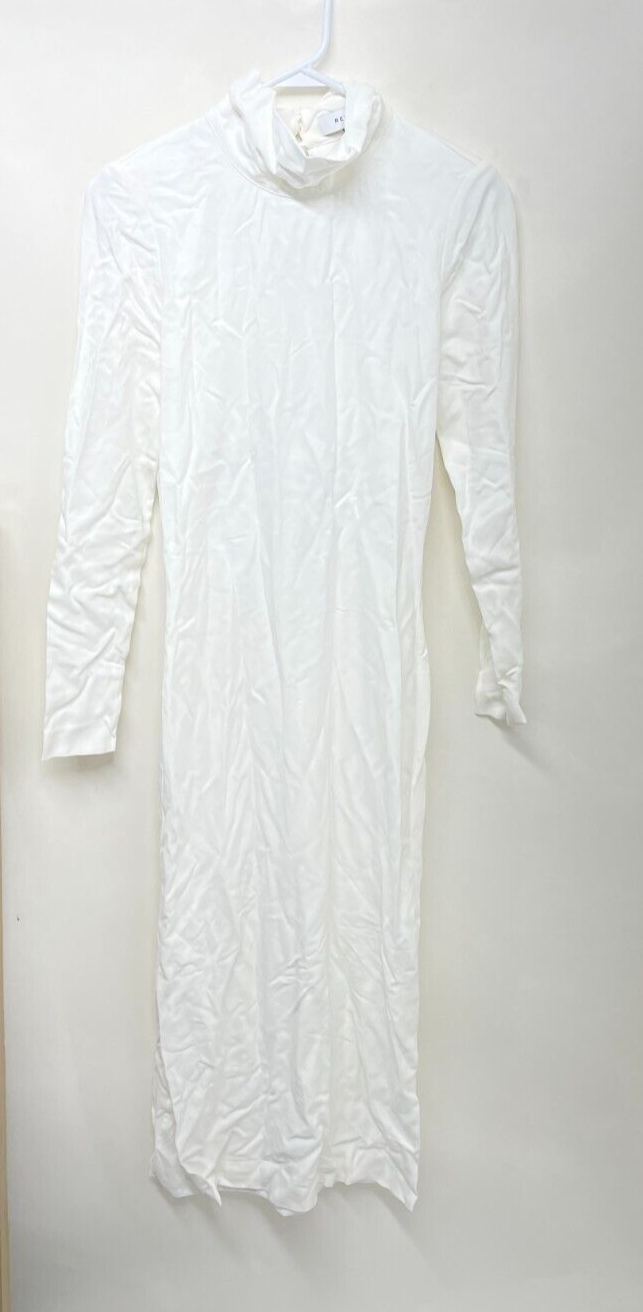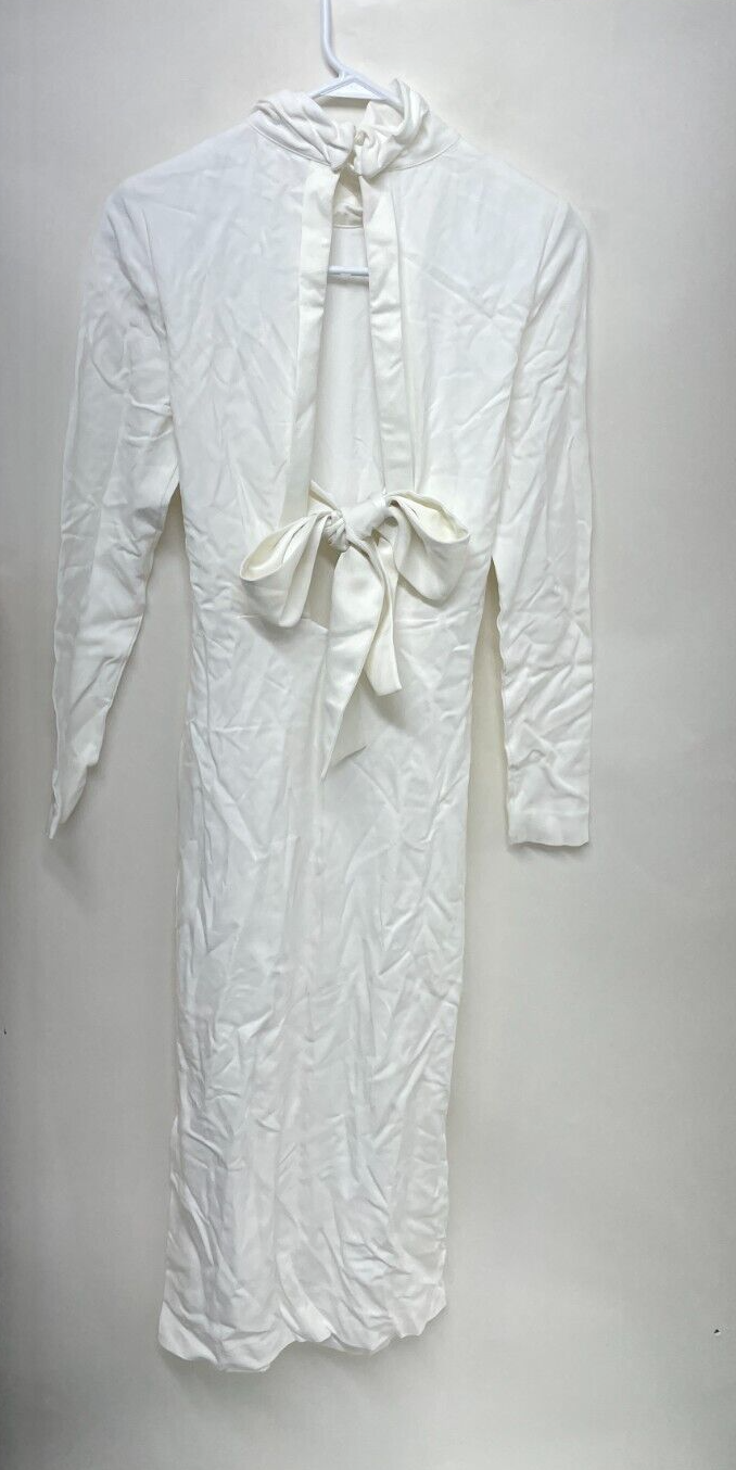 Reiss Womens 4 Martha Open Back Midi Dress White High Neck Long Sleeve T42-554