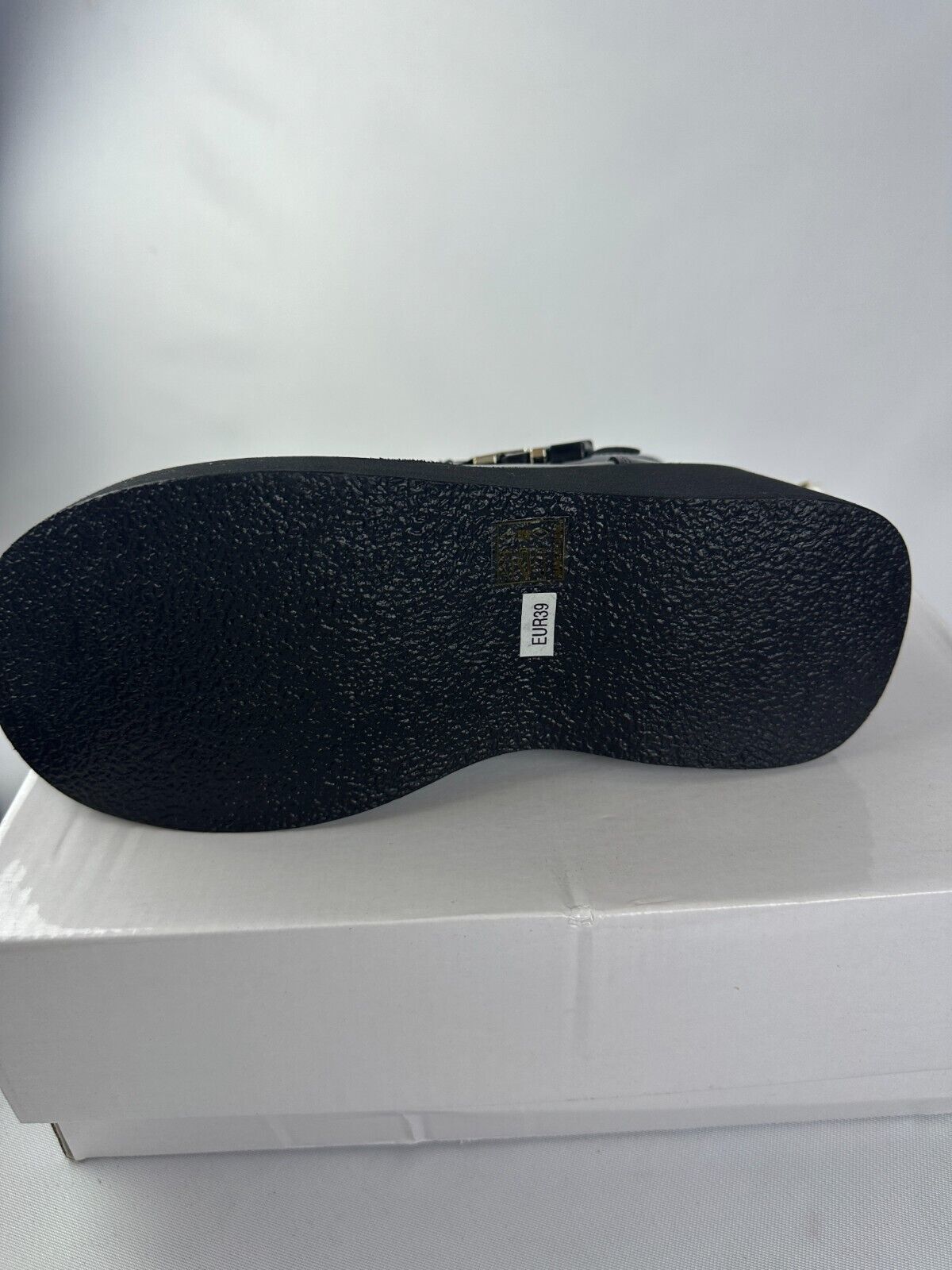 Romwe Womens EU 39 Platform Ankle Boots Black Patent Leather Buckle Lace UpWomens Size EU 39