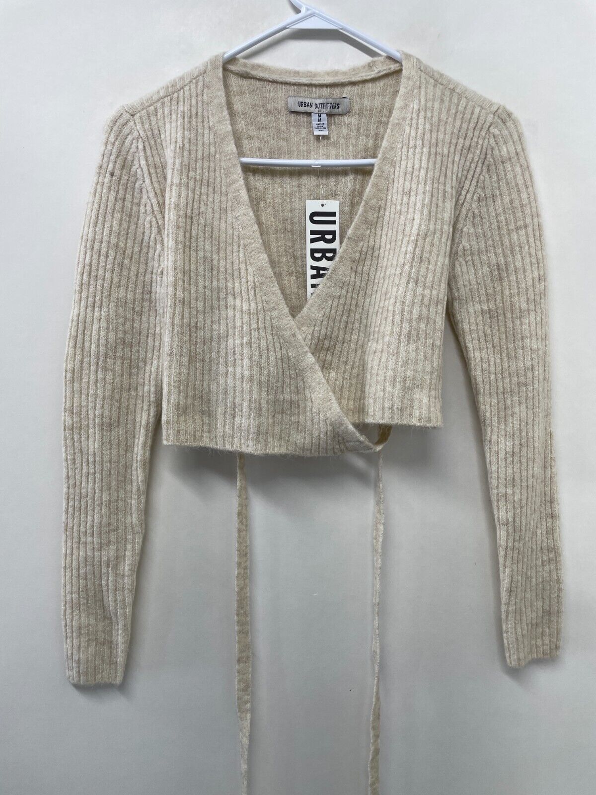 Urban Outfitters Womens M Bibi Wrap Sweater Creme Cropped Tie V-Neck 65177354Womens Size M