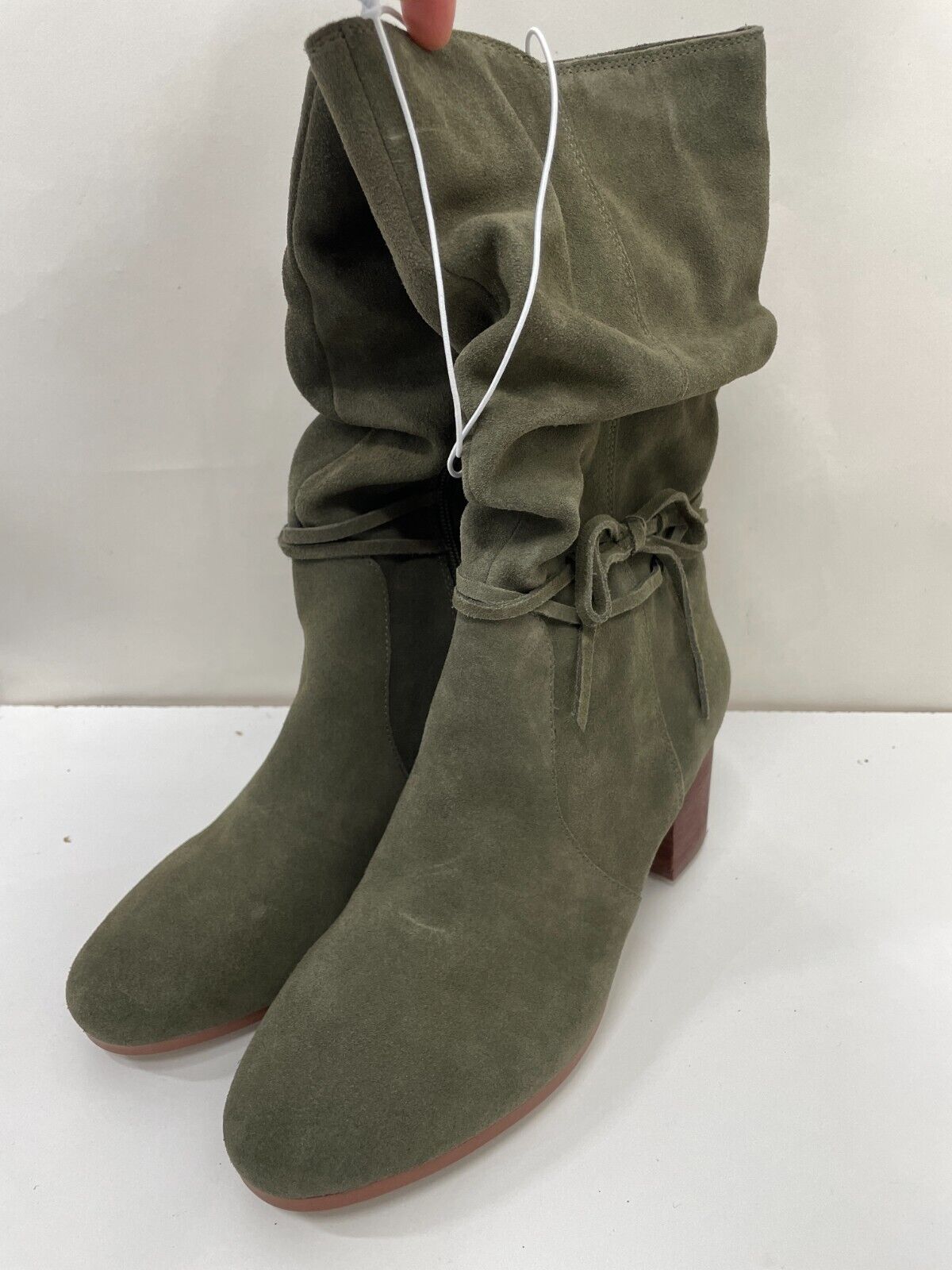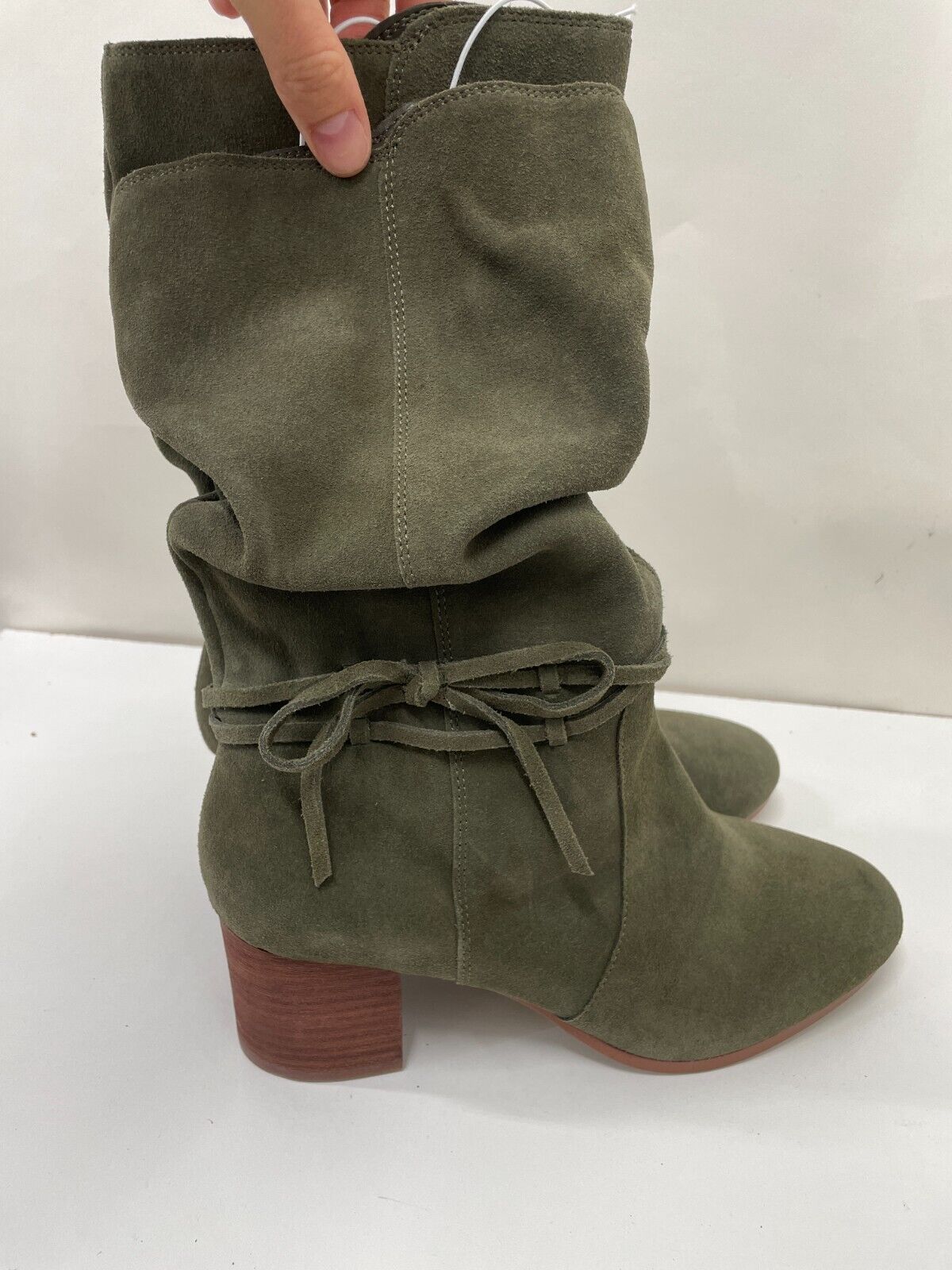 Violet & Red Womens 9M Janine Mid-Calf Faux Suede Boots Green Zip Closure