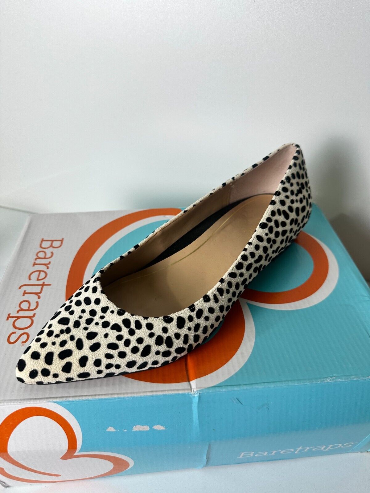 Vionic Women 8.5 Lena Spot Polka Dot Pointed Slip Flat Shoes White Suede Ballet