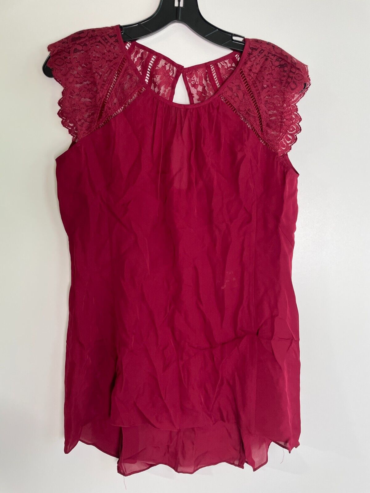 White House Black Market Womens S Silk Lace Sleeve Hi-Lo Shell Blouse Red Top